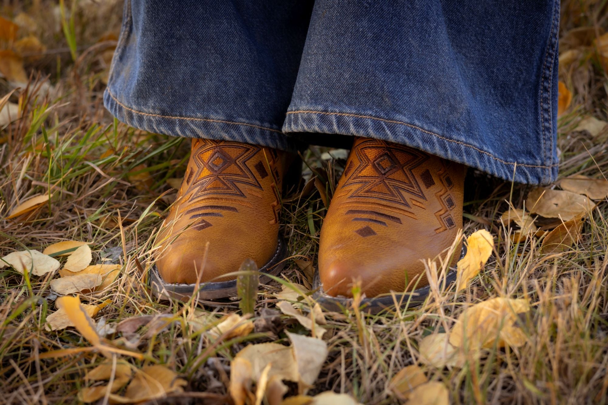 Womens Fashion Mule Tan Floral Tooled Leather With Open Toe And Back Strap