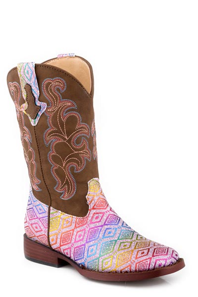 Little Girls Pink Multi Glitter Vamp Shaft Boot