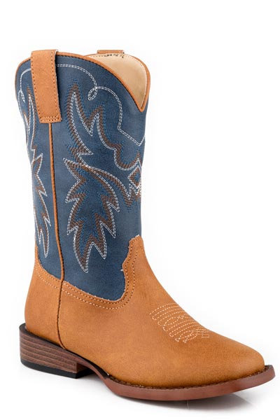 Little Boys Tan Vamp With Black Heel Counter Boot Vintage Blue Shaft