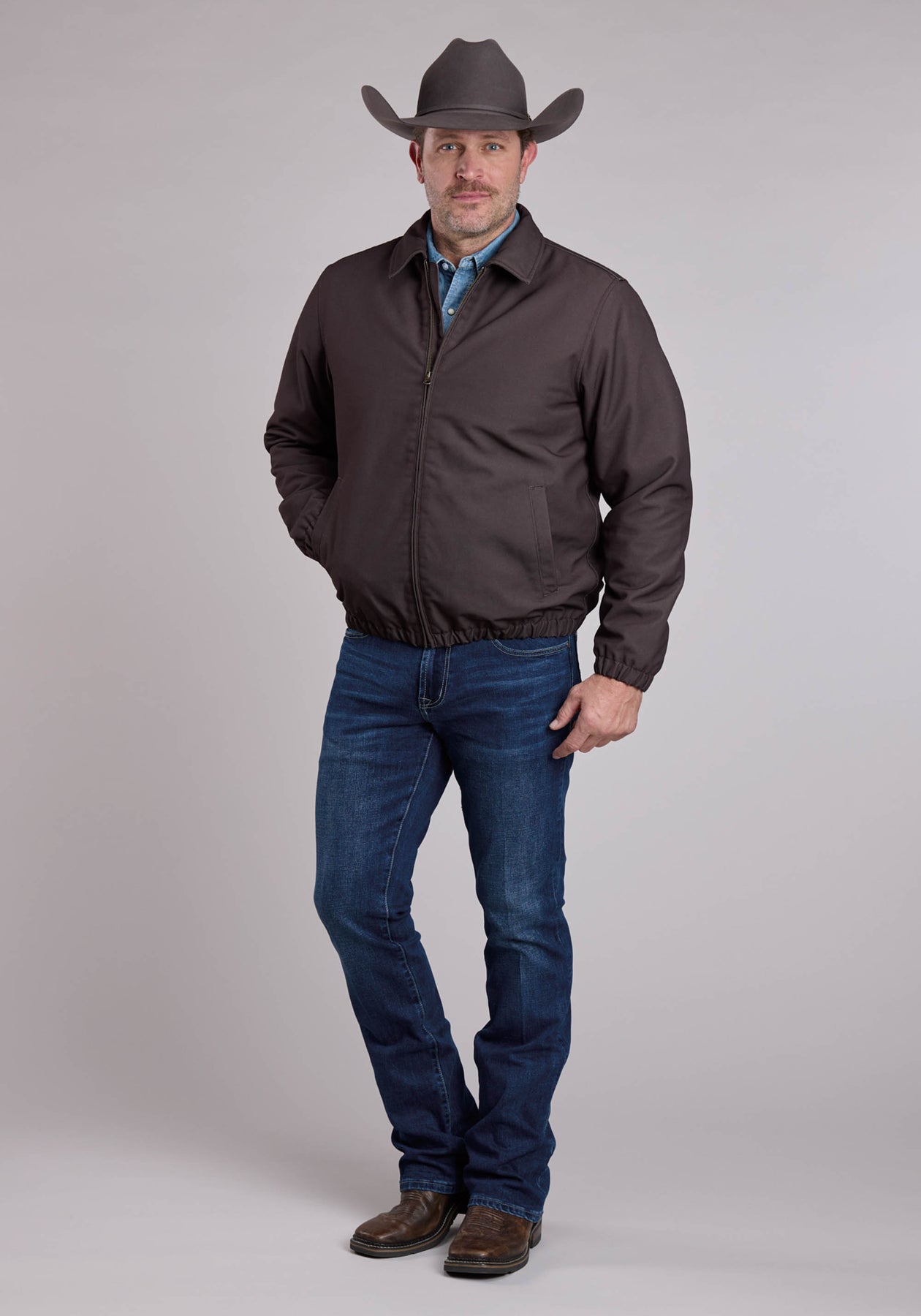 MENS JACKET ZIPPER CANVAS ZIP FRONT WESTERN JACKET