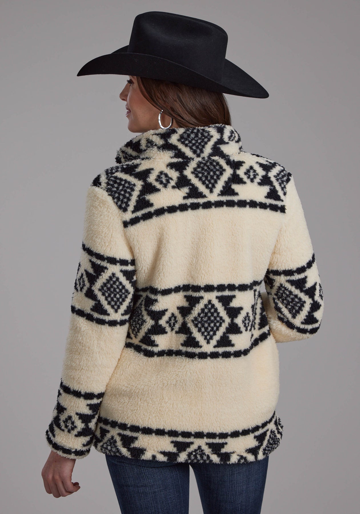 Womens Black Cream Aztec Stripe Zipper Jacket