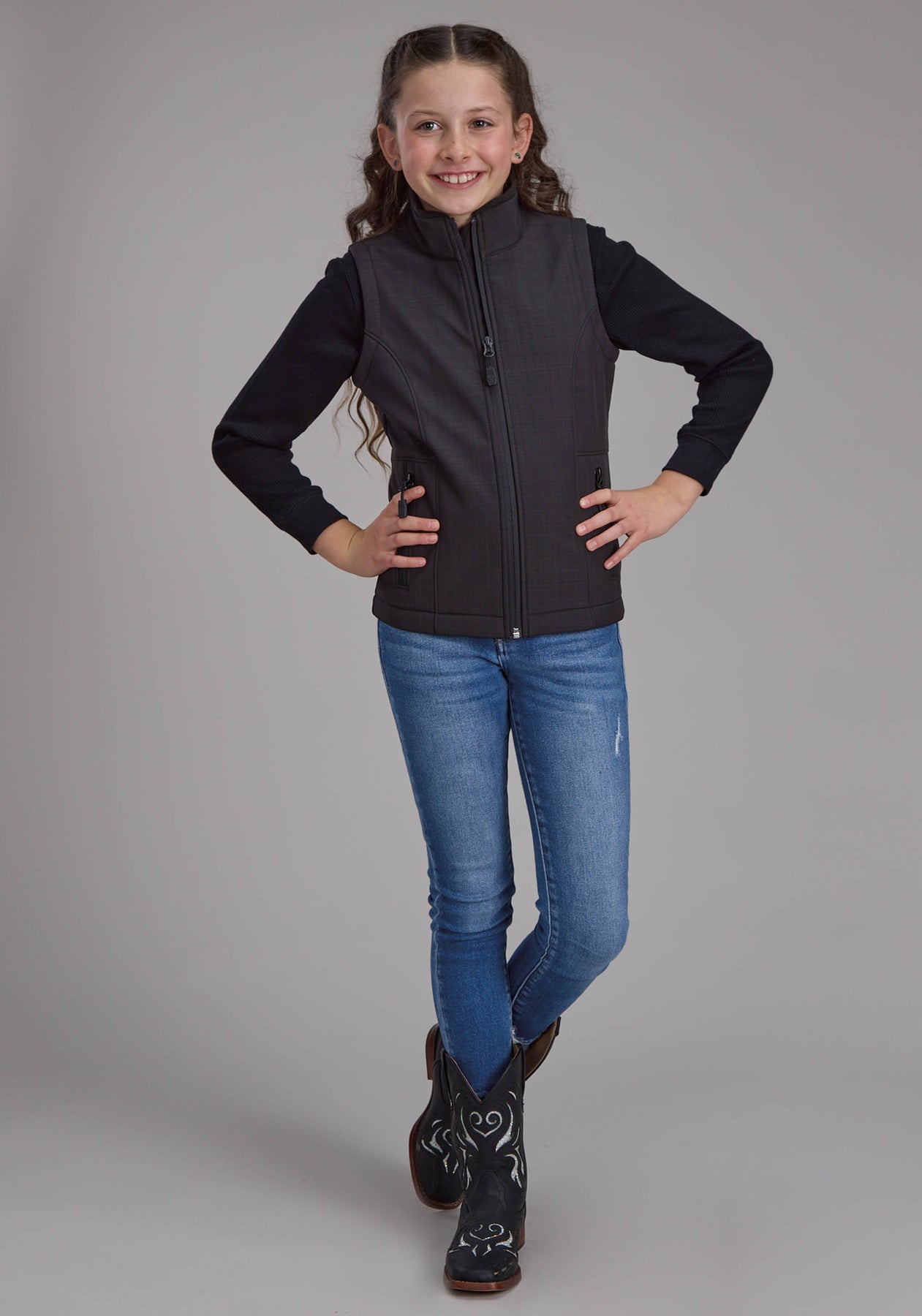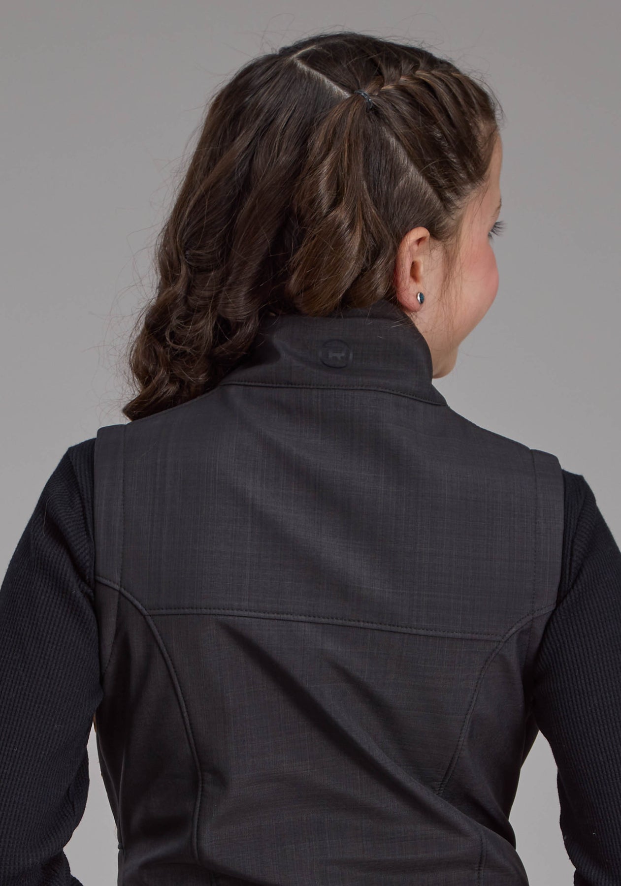 Girls Charcoal Heather With Black Fleece Zipper Vest