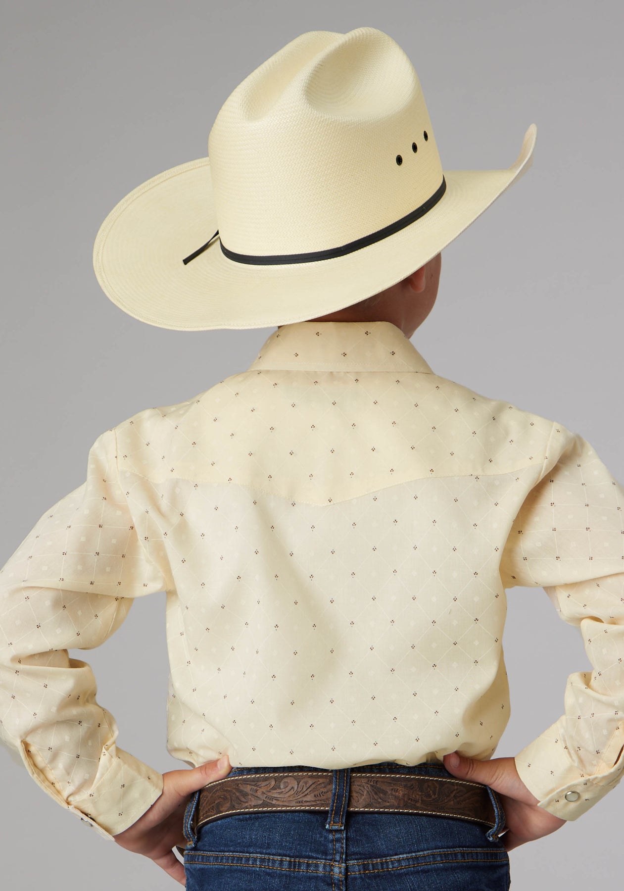 BOYS CREAM WHITE DIAMOND WALLPAPER PRINT LONG SLEEVE SNAP WESTERN SHIR