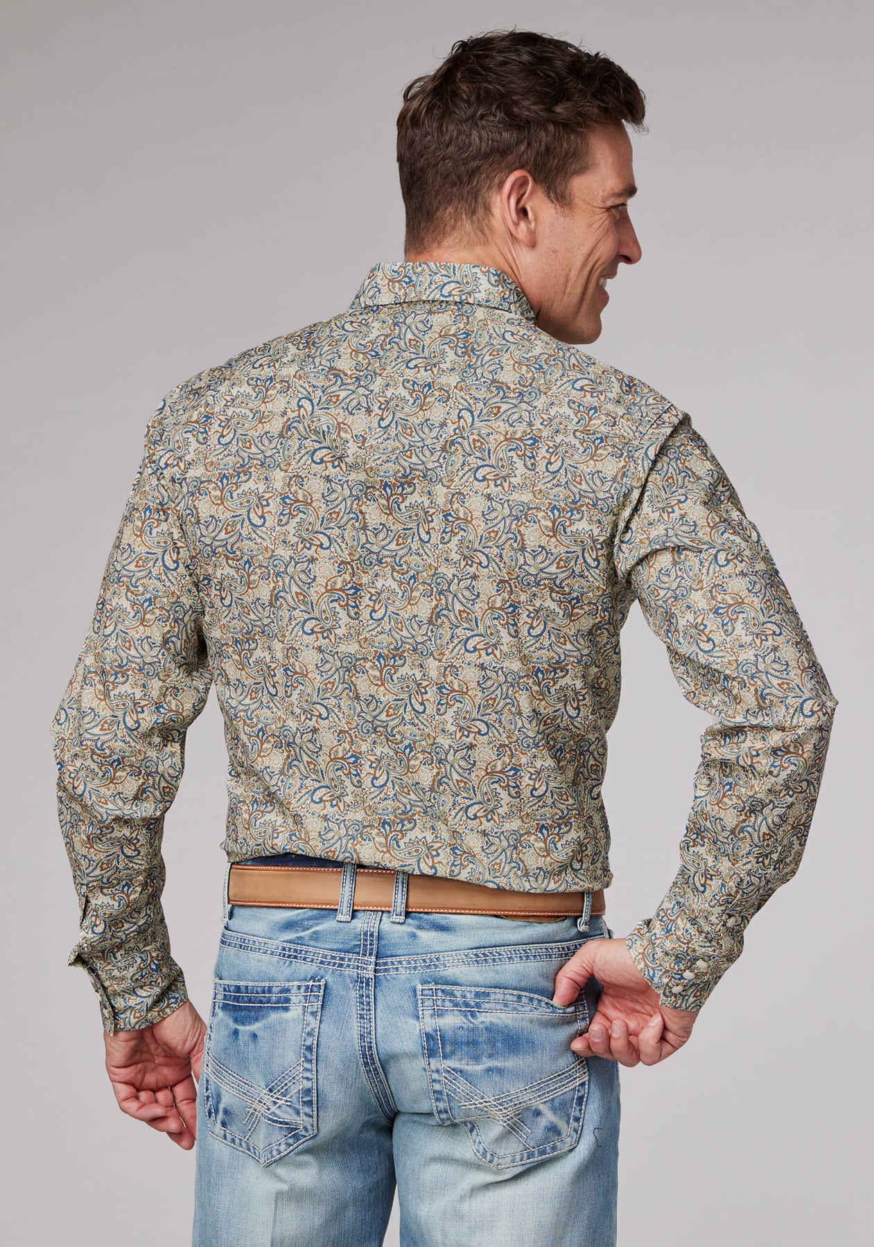 MENS SKETCHY PAISLEY PRINT LONG SLEEVE SNAP WESTERN SHIRT