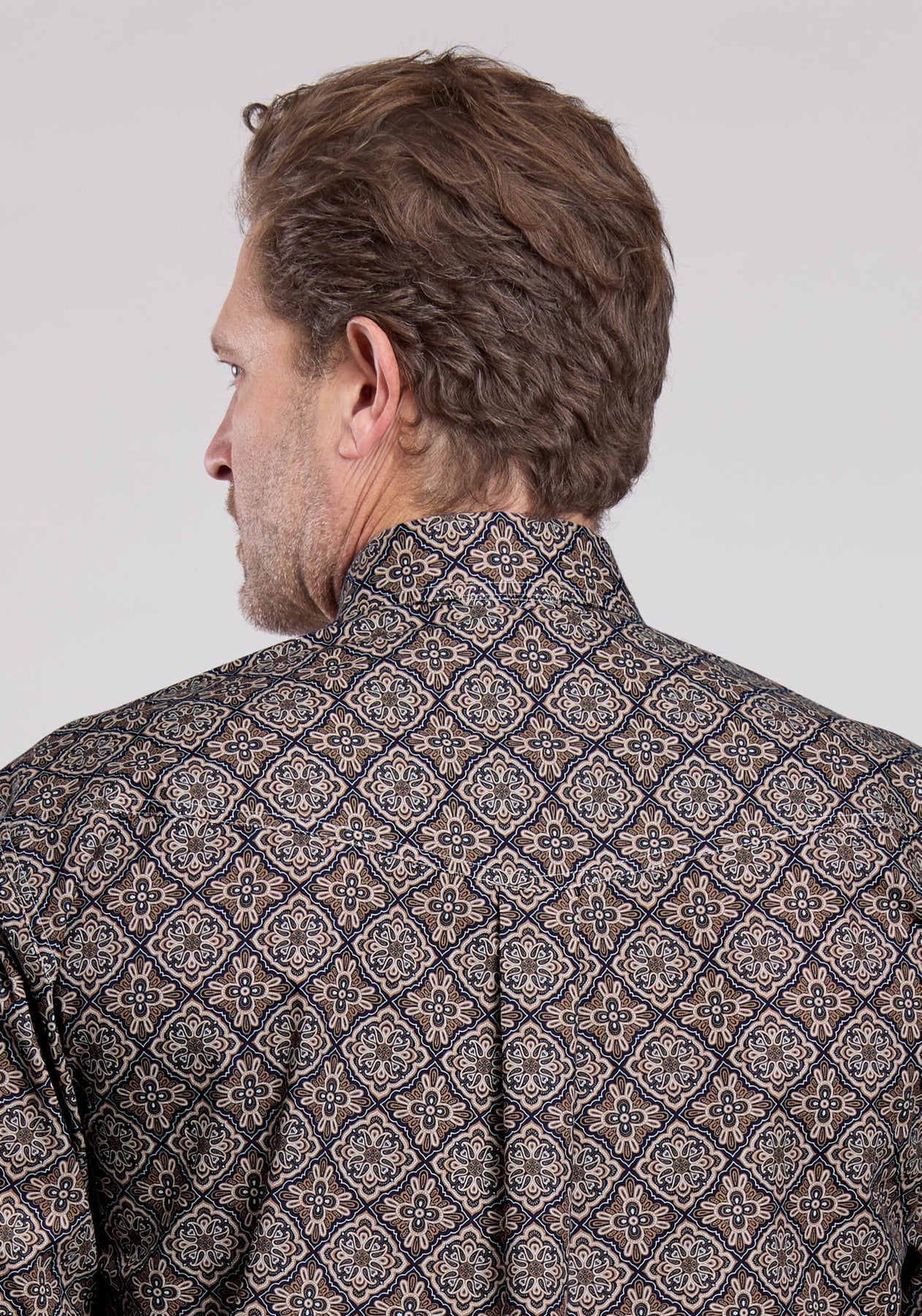 Mens Long Sleeve Button Bronze Medallion Western Shirt