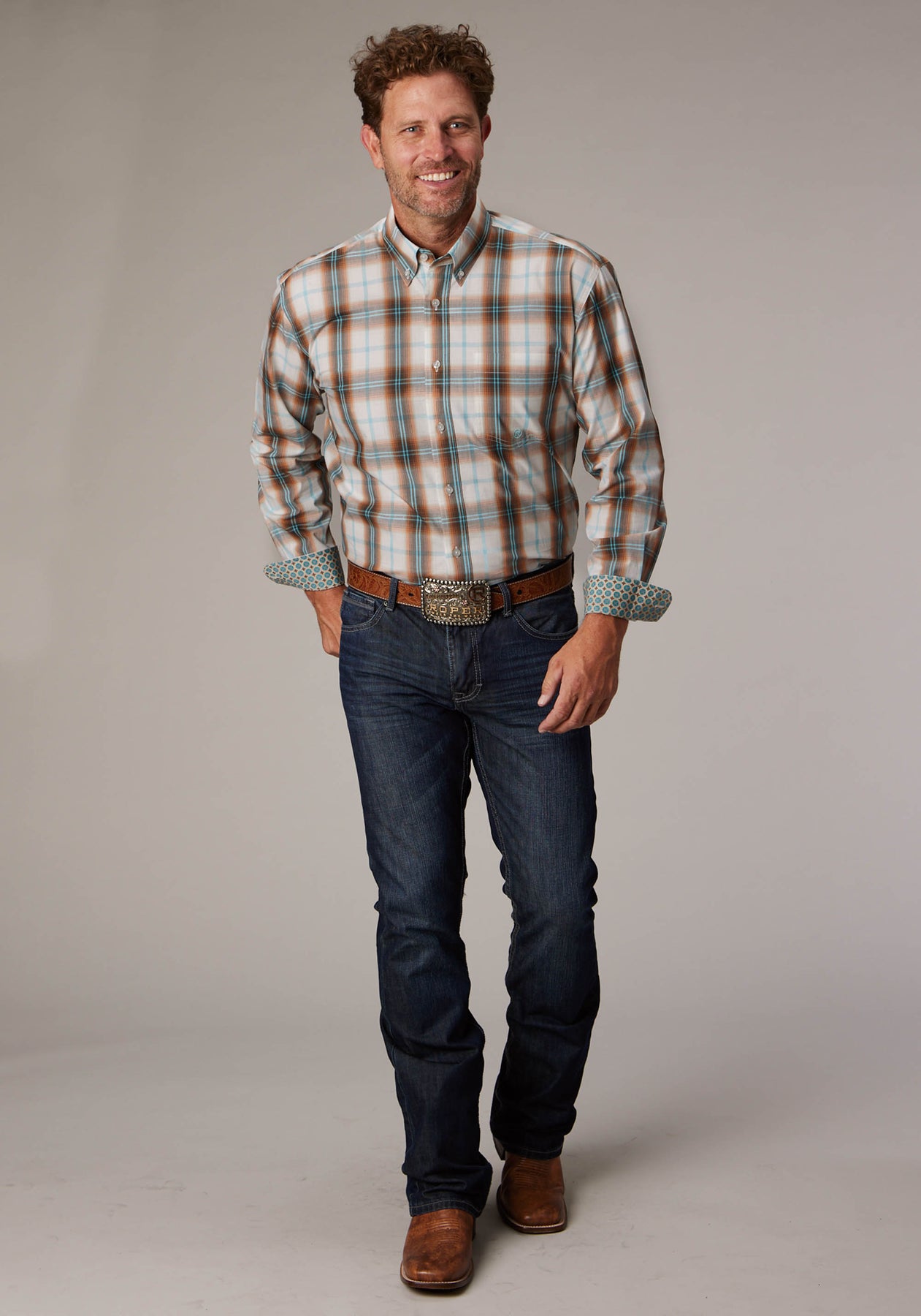 MENS DESERT SPRING PLAID LONG SLEEVE BUTTON WESTERN SHIRT