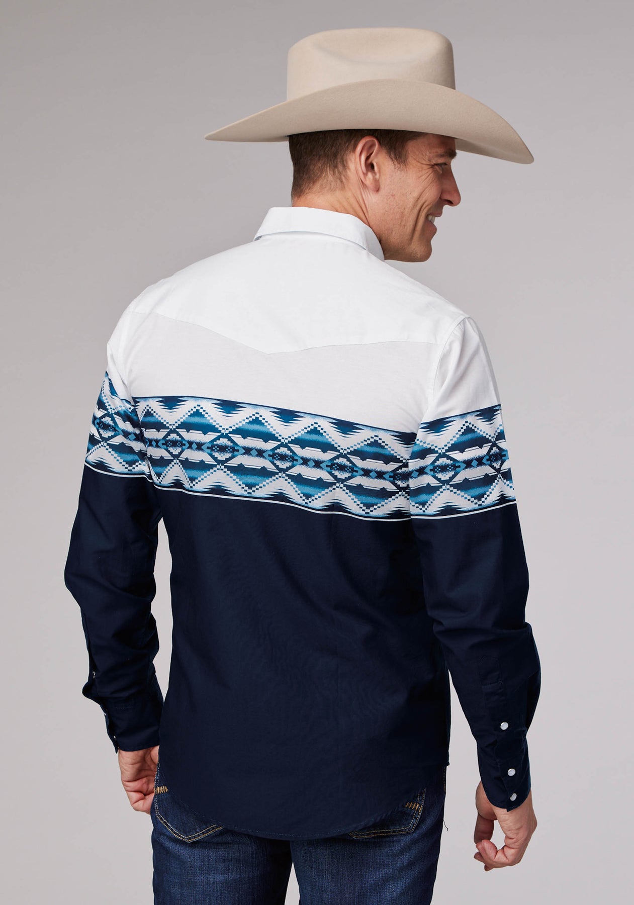 MENS AZTEC BORDER LONG SLEEVE SNAP WESTERN SHIRT