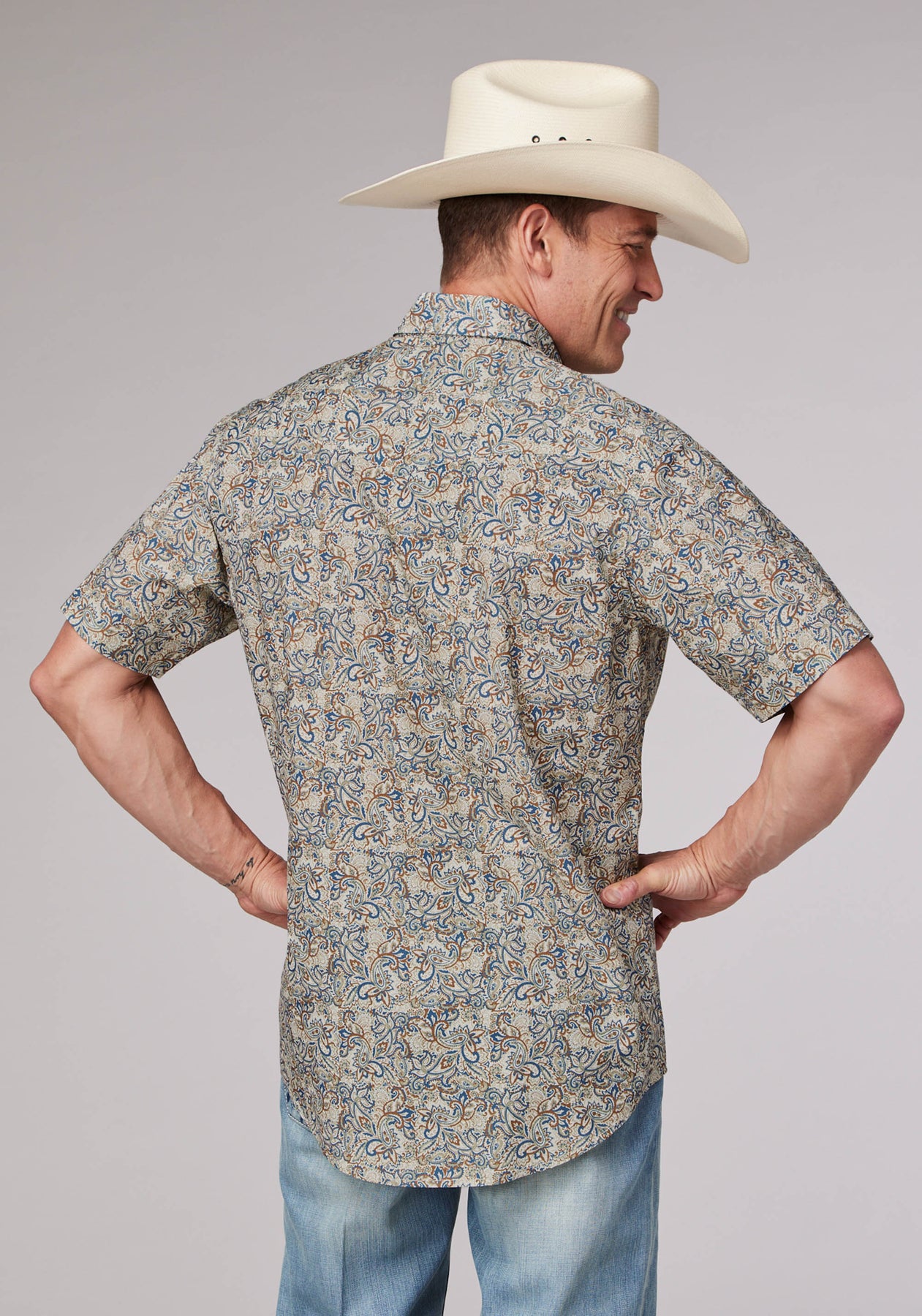 MENS SKETCHY PAISLEY PRINT SHORT SLEEVE SNAP WESTERN SHIRT
