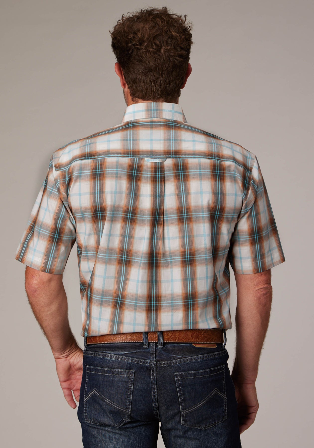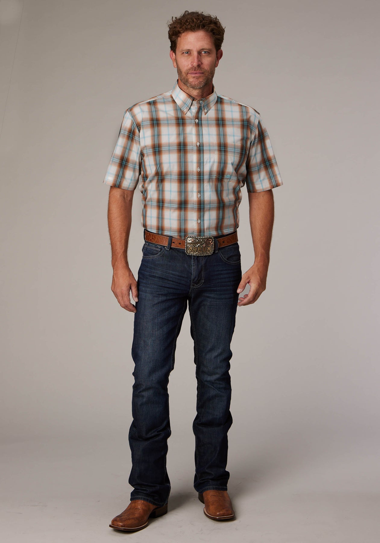 MENS DESERT SPRING PLAID SHORT SLEEVE BUTTON WESTERN SHIRT