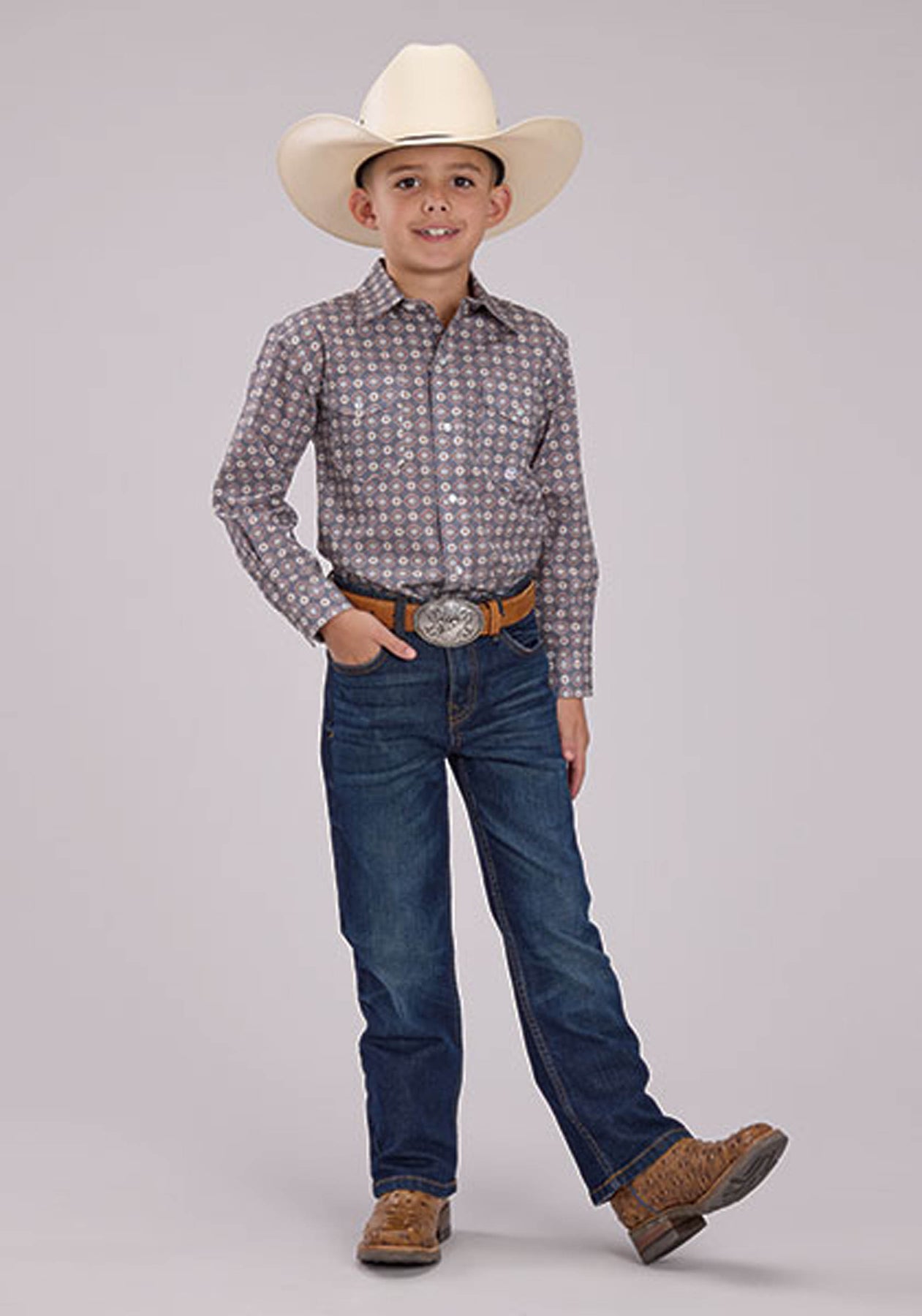 BOYS LONG SLEEVE SNAP MEDALLION FOULARD WESTERN SHIRT