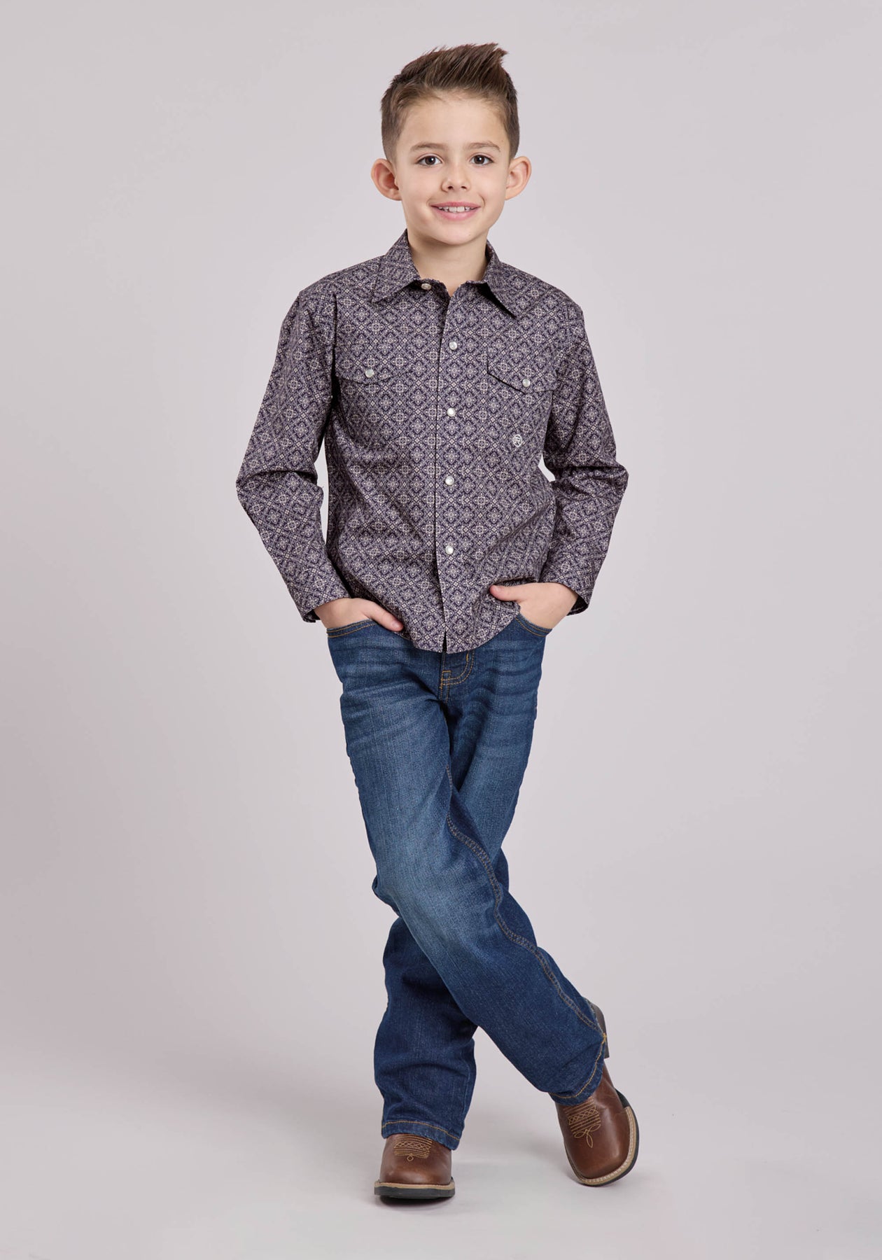 BOYS LONG SLEEVE SNAP PLUM FOULARD WESTERN SHIRT