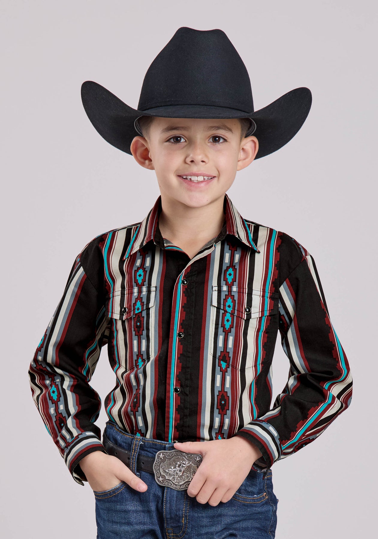 BOYS LONG SLEEVE SNAP SERAPE STRIPE WESTERN SHIRT