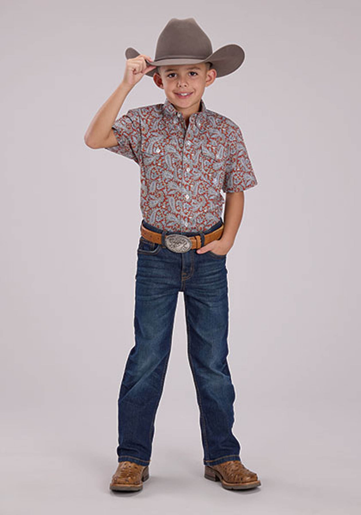 BOYS SHORT SLEEVE BUTTON CLAY PAISLEY WESTERN SHIRT