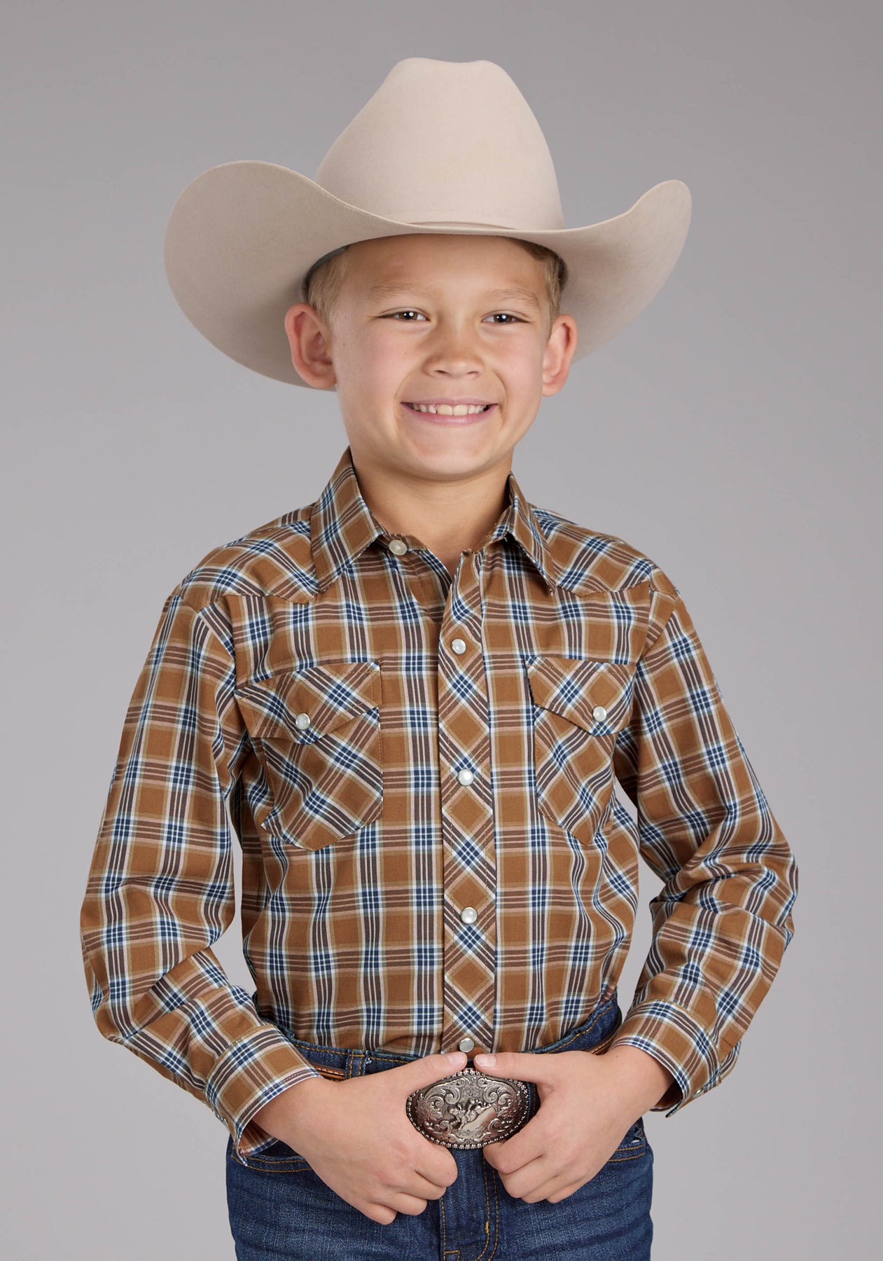 Boys Rust Plaid Long Sleeve Snap Western Shirt