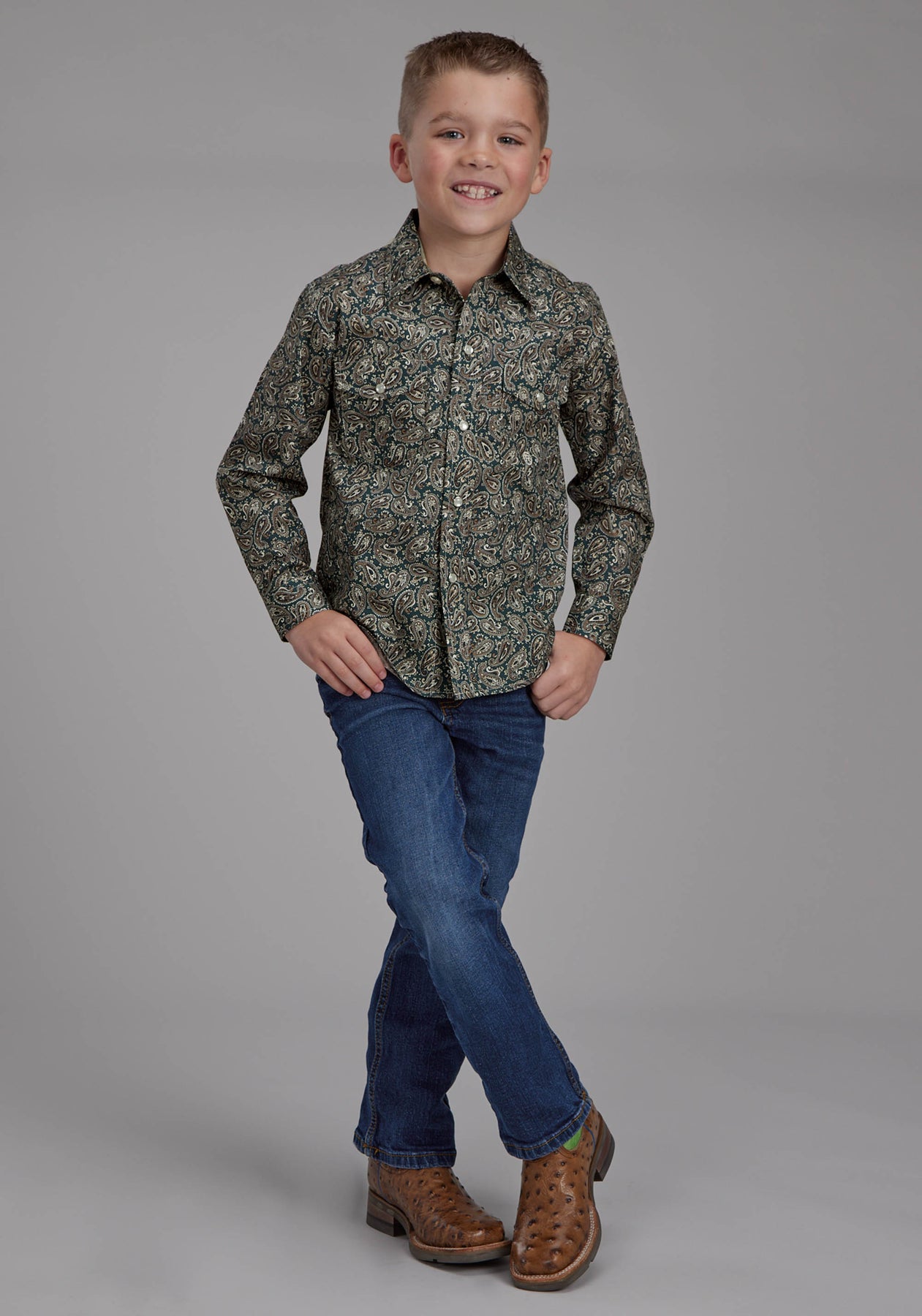 Boys Oak Paisley Long Sleeve Snap Western Shirt