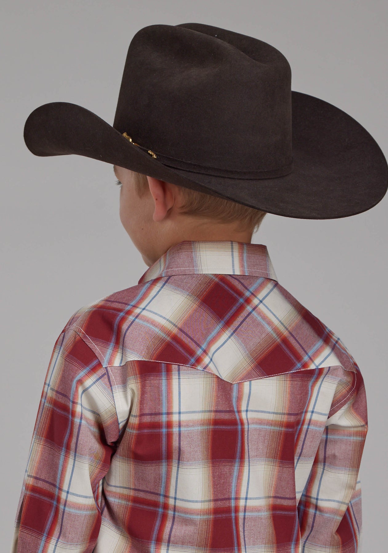 Boys '57 Chevy Plaid Long Sleeve Snap Western Shirt