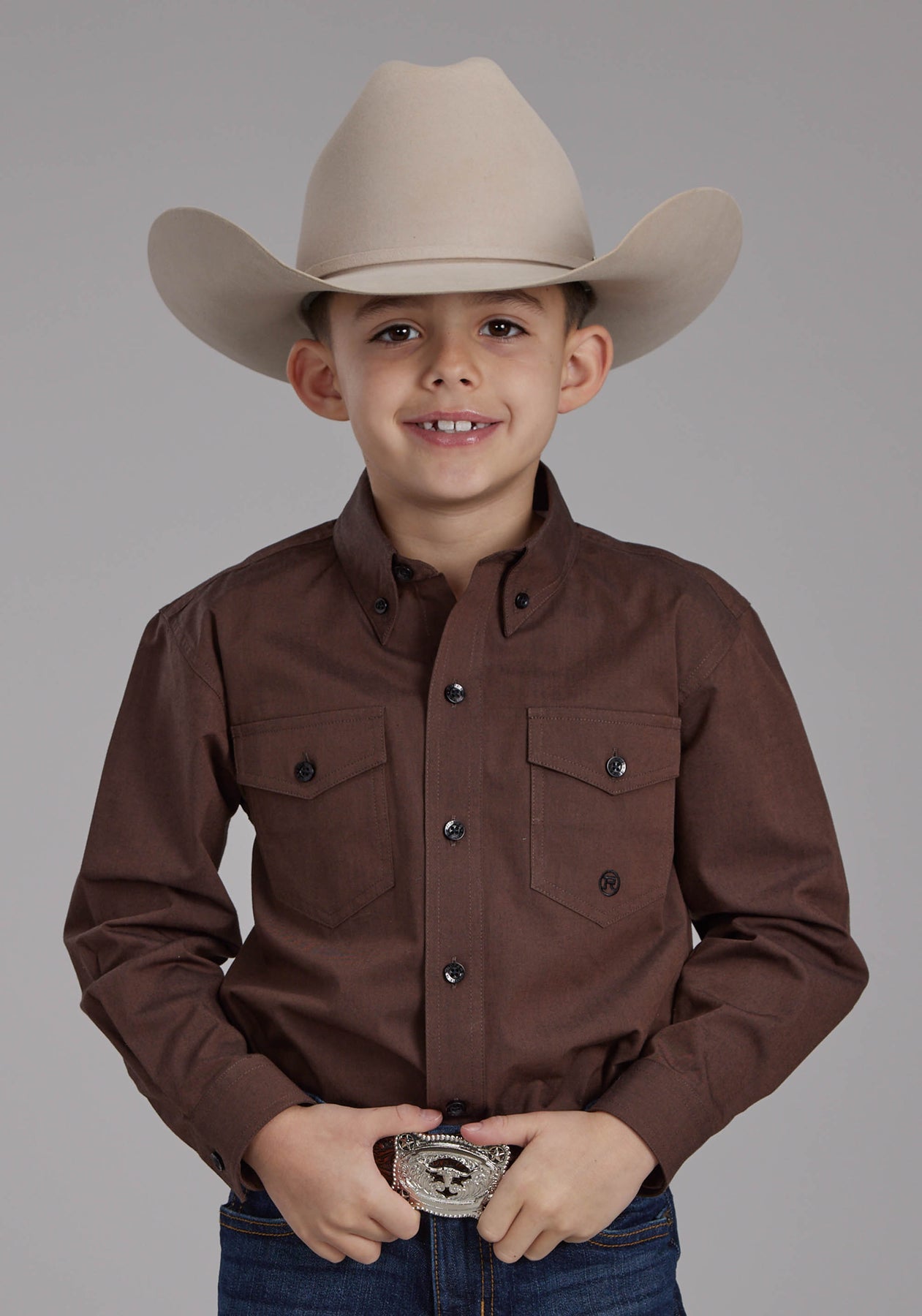 Boys Black Fill Poplin - Polin Brown Long Sleeve Button Western Shirt