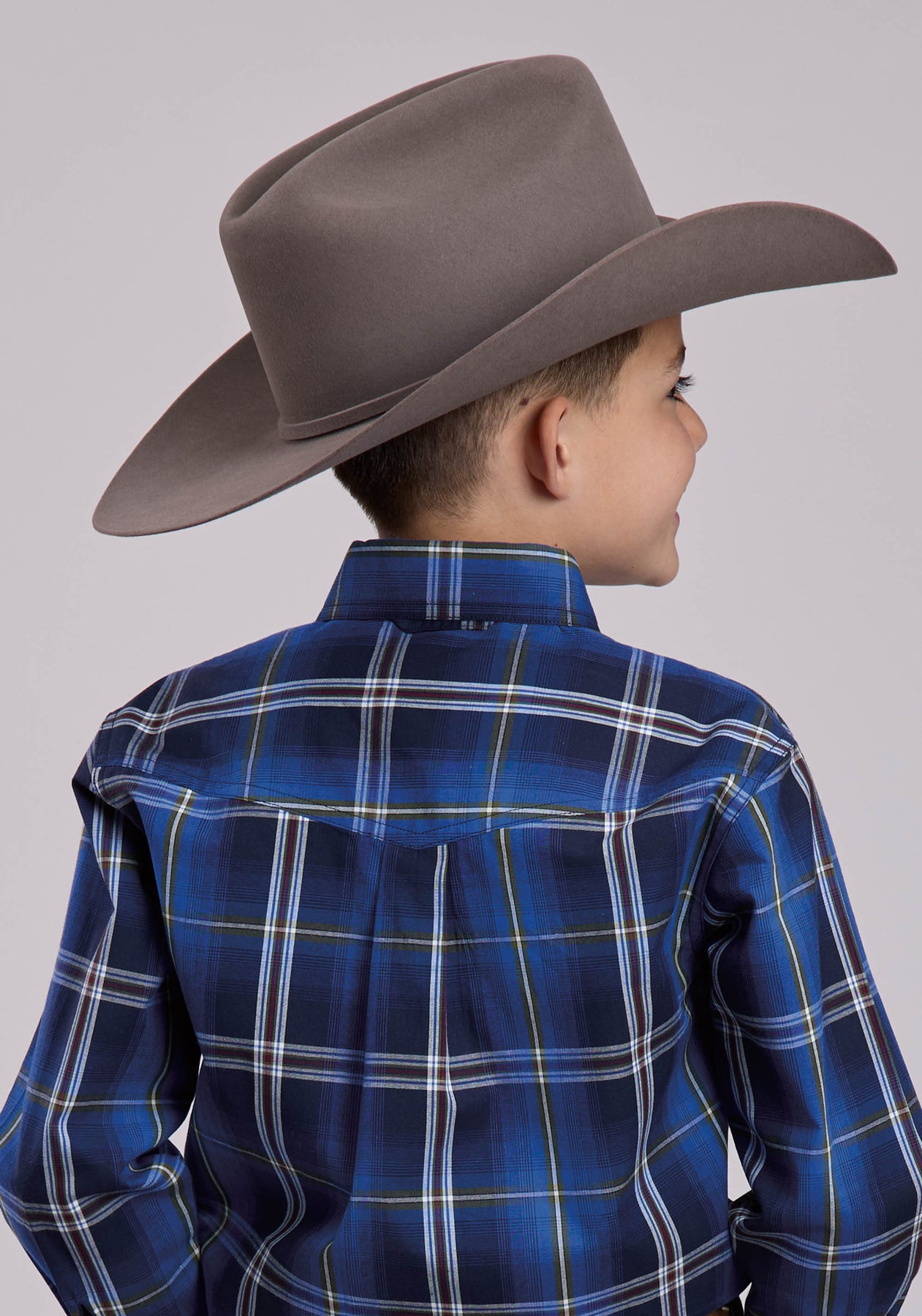 BOYS LONG SLEEVE BUTTON MIDNIGHT PLAID WESTERN SHIRT
