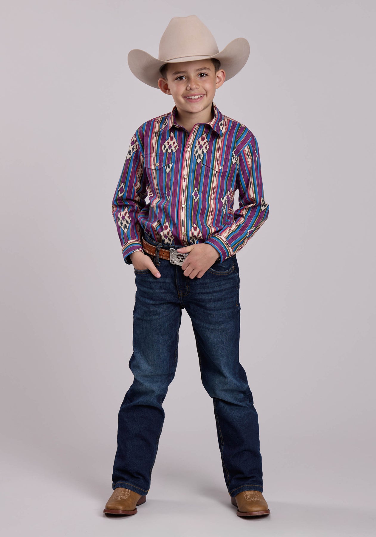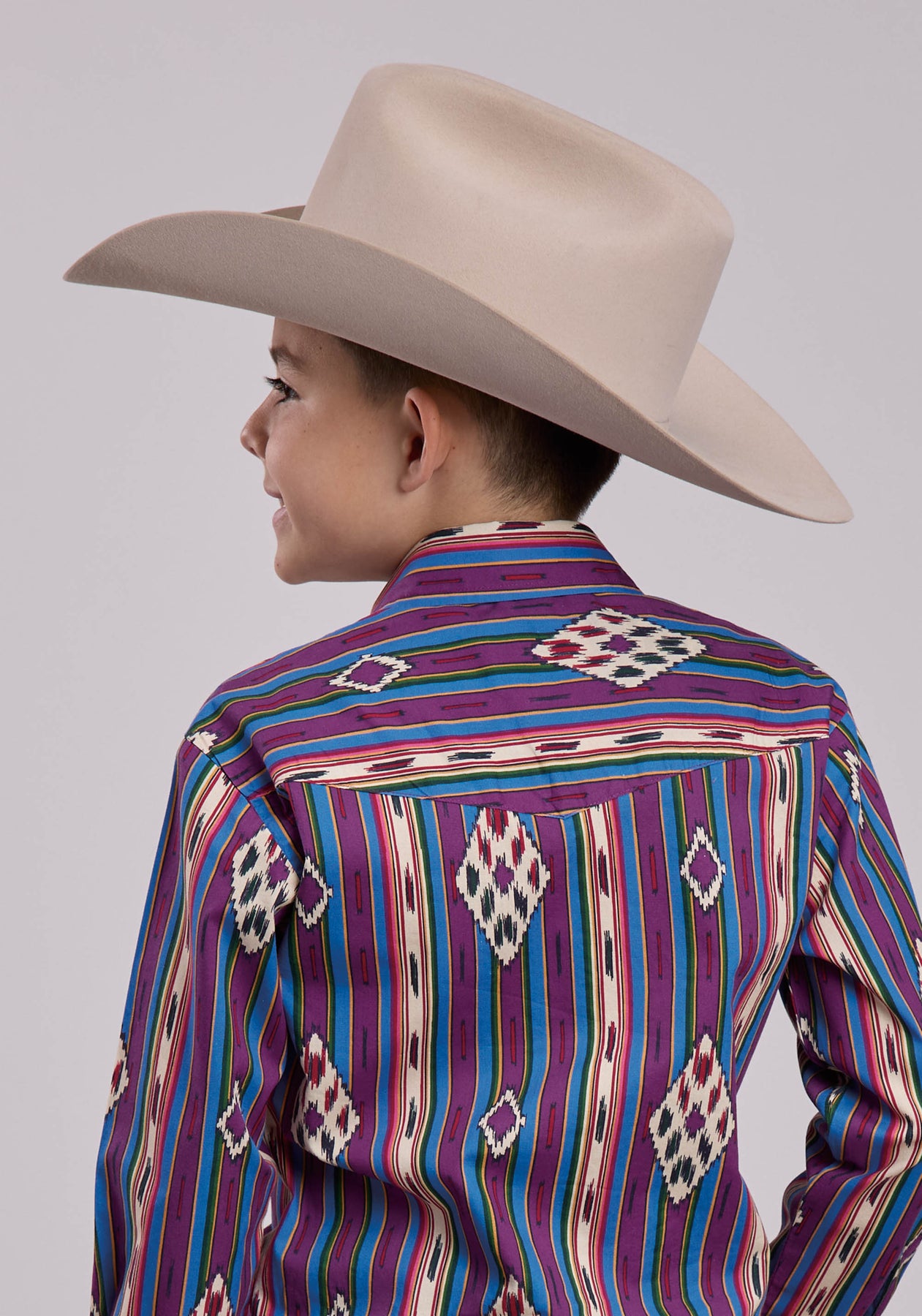 BOYS LONG SLEEVE SNAP VINTAGE STRIPE WESTERN SHIRT