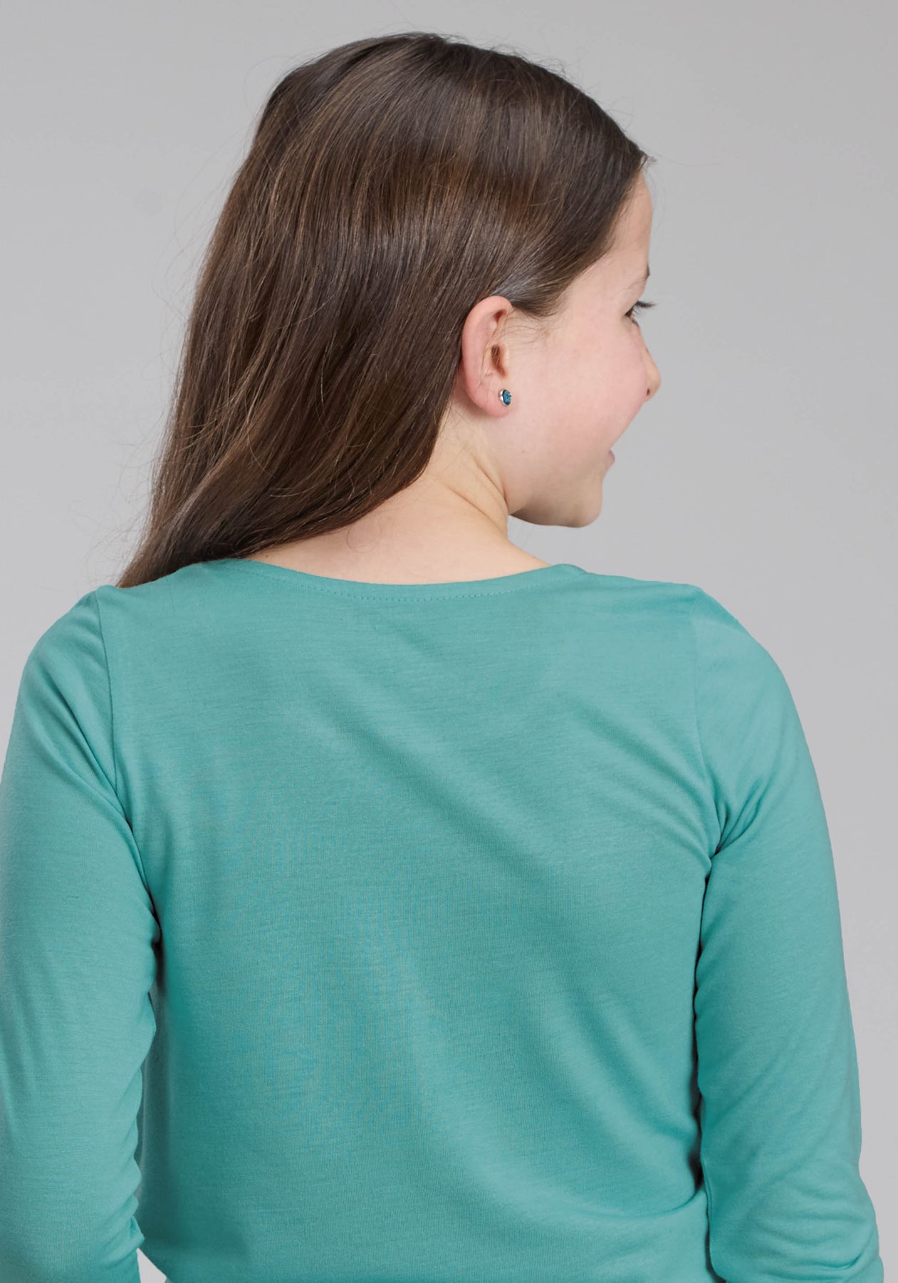 Girls Poly Rayon Scoop Neck Tee Long Sleeve Pullover Western Shirt