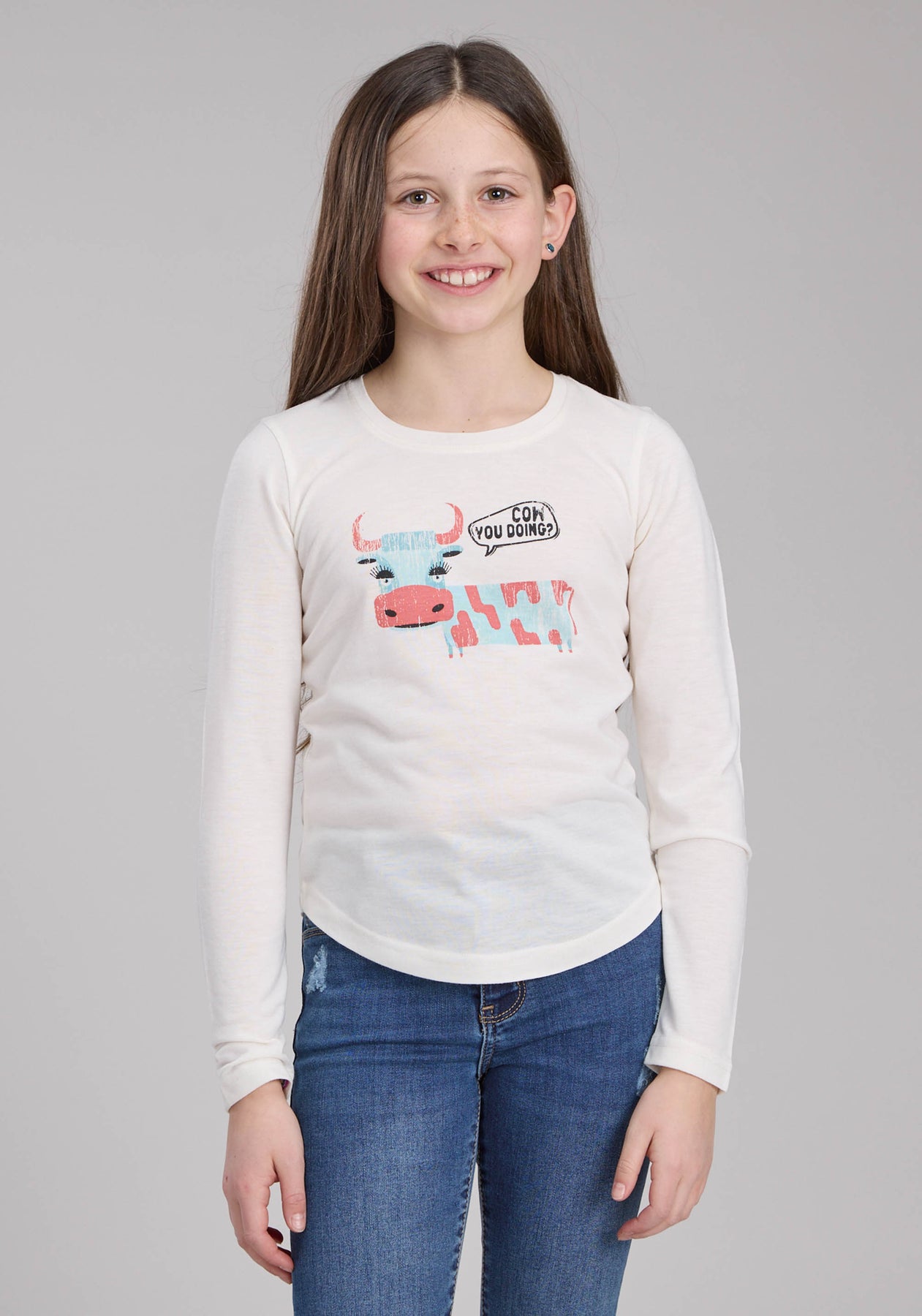 Girls Poly Rayon Scoop Neck Tee Long Sleeve Pullover Western Shirt