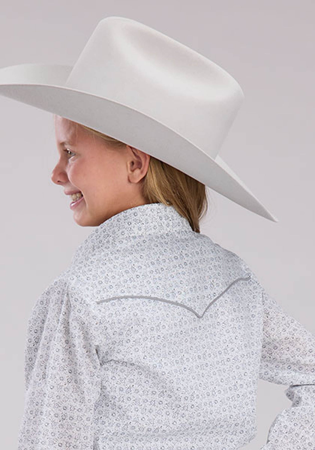 Girls Gray White Floral Print Long Sleeve Snap Western Shirt