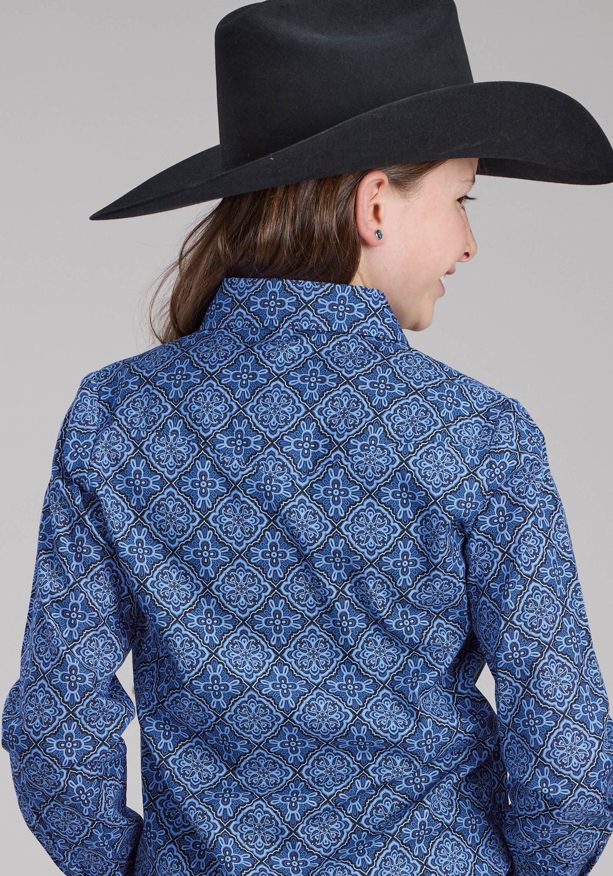 Girls Saphire Ornamental Long Sleeve Snap Western Shirt