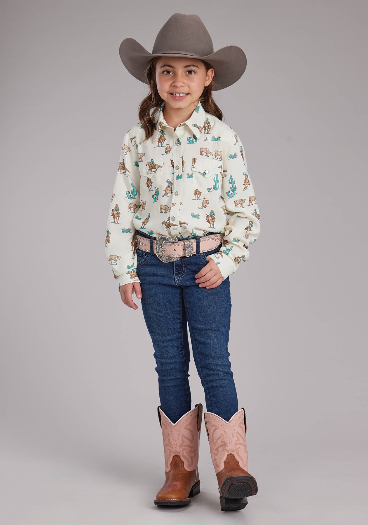 Girls Ropers Printed Rayon Long Sleeve Snap Western Shirt