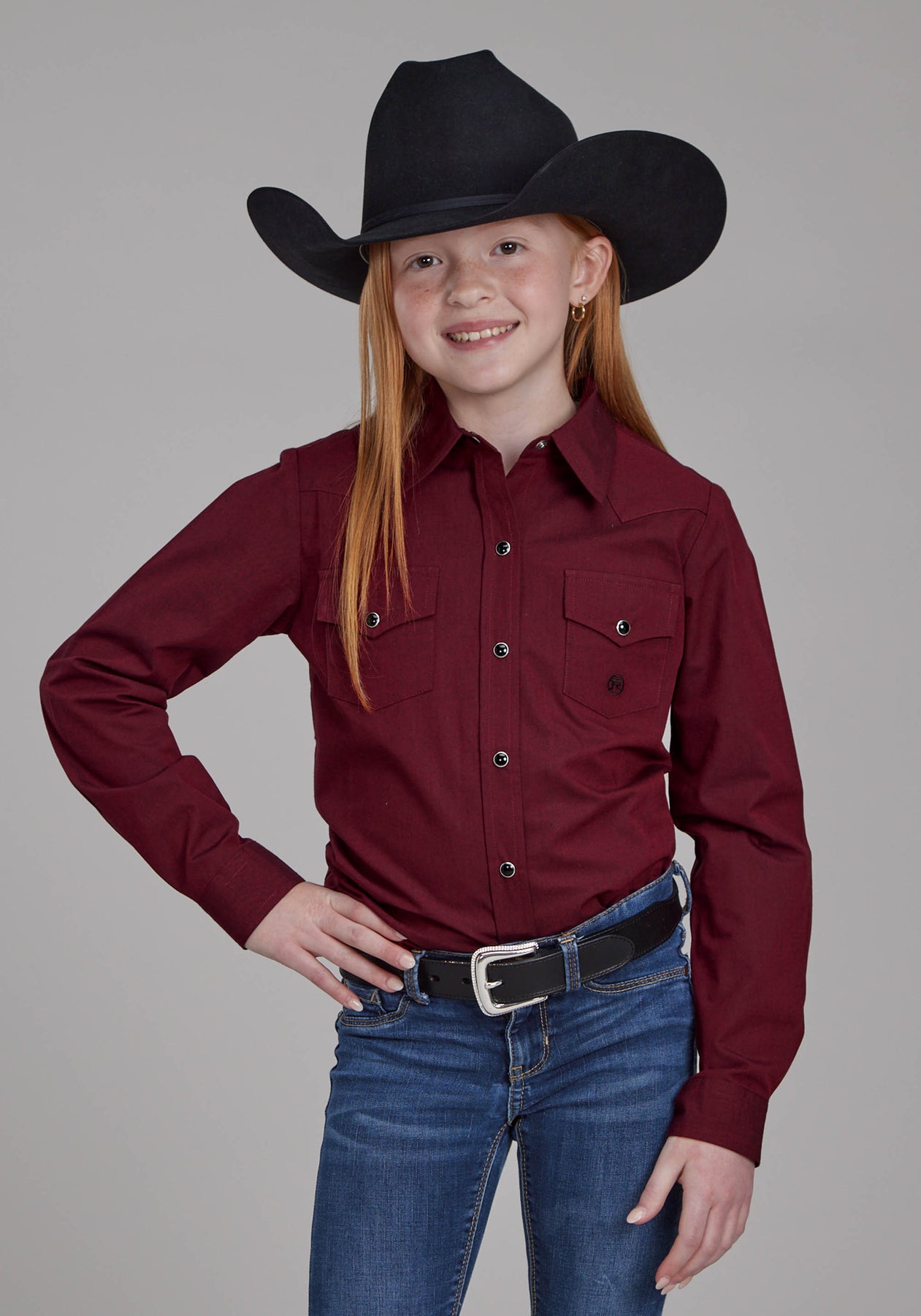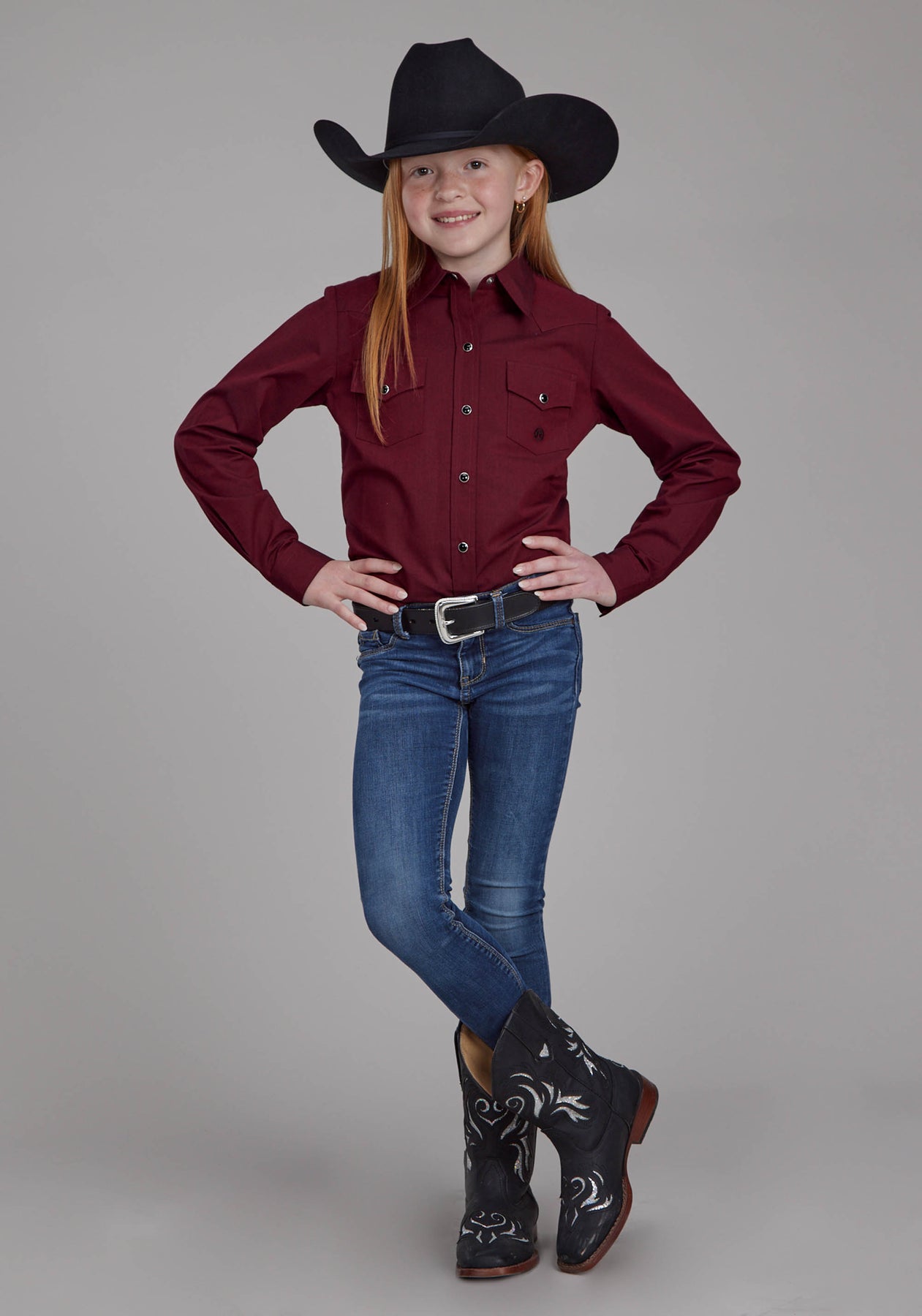 GIRLS LONG SLEEVE SNAP SOLID BLACK FILL POPLIN - RED WESTERN SHIRT