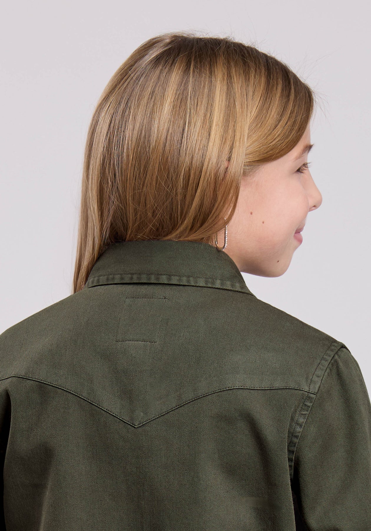 GIRLS LONG SLEEVE BUTTON PIGMENT DYED LS WESTERN BLOUSE WESTERN SHIRT
