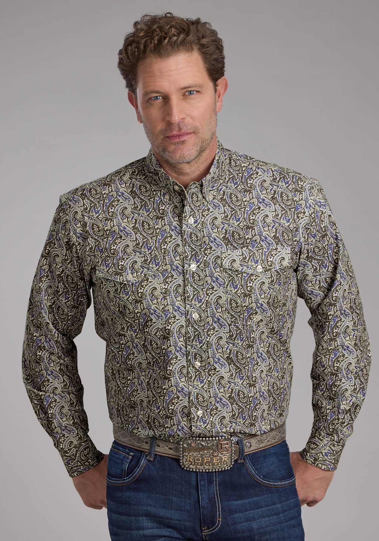 Mens Stone Paisley Long Sleeve Button Western Shirt
