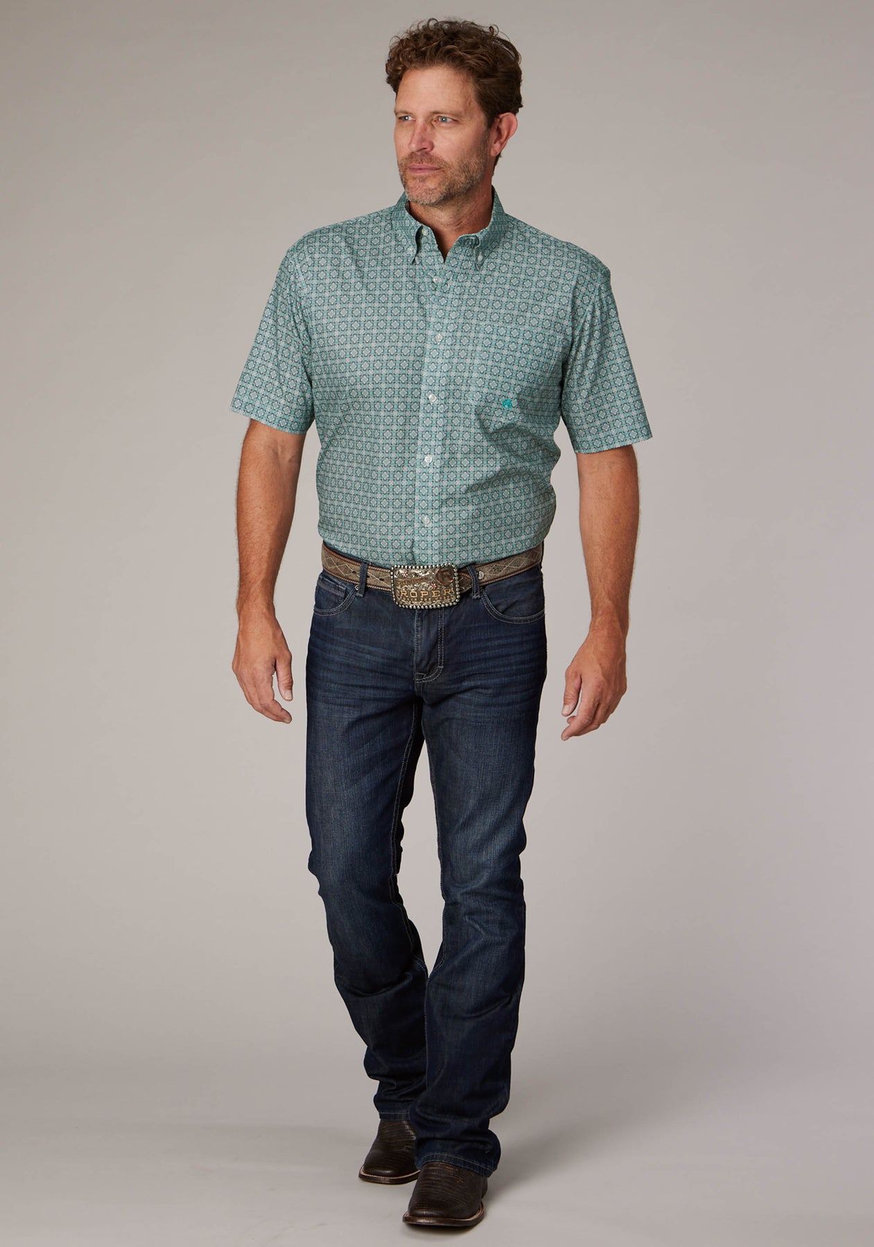 MENS SILVER SPRING FOULARD SHORT SLEEVE BUTTON WESTERN SHIRT