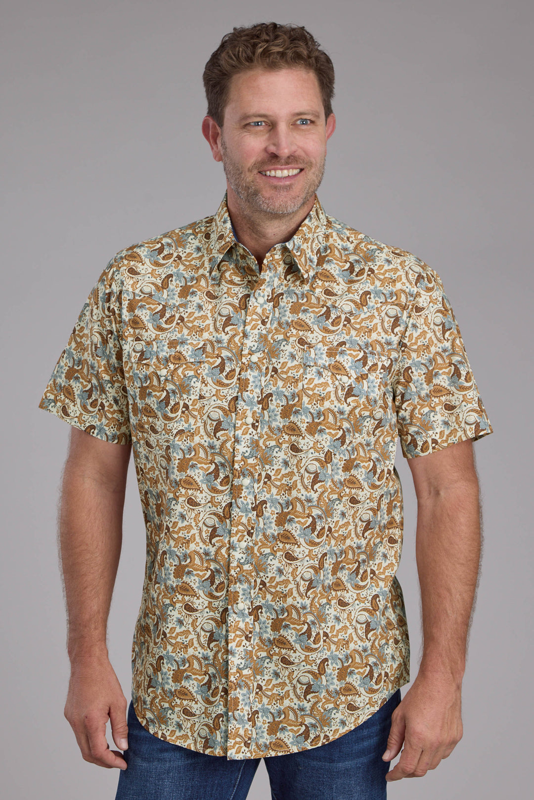 Mens Prairie Paisley Short Sleeve Button Western Shirt