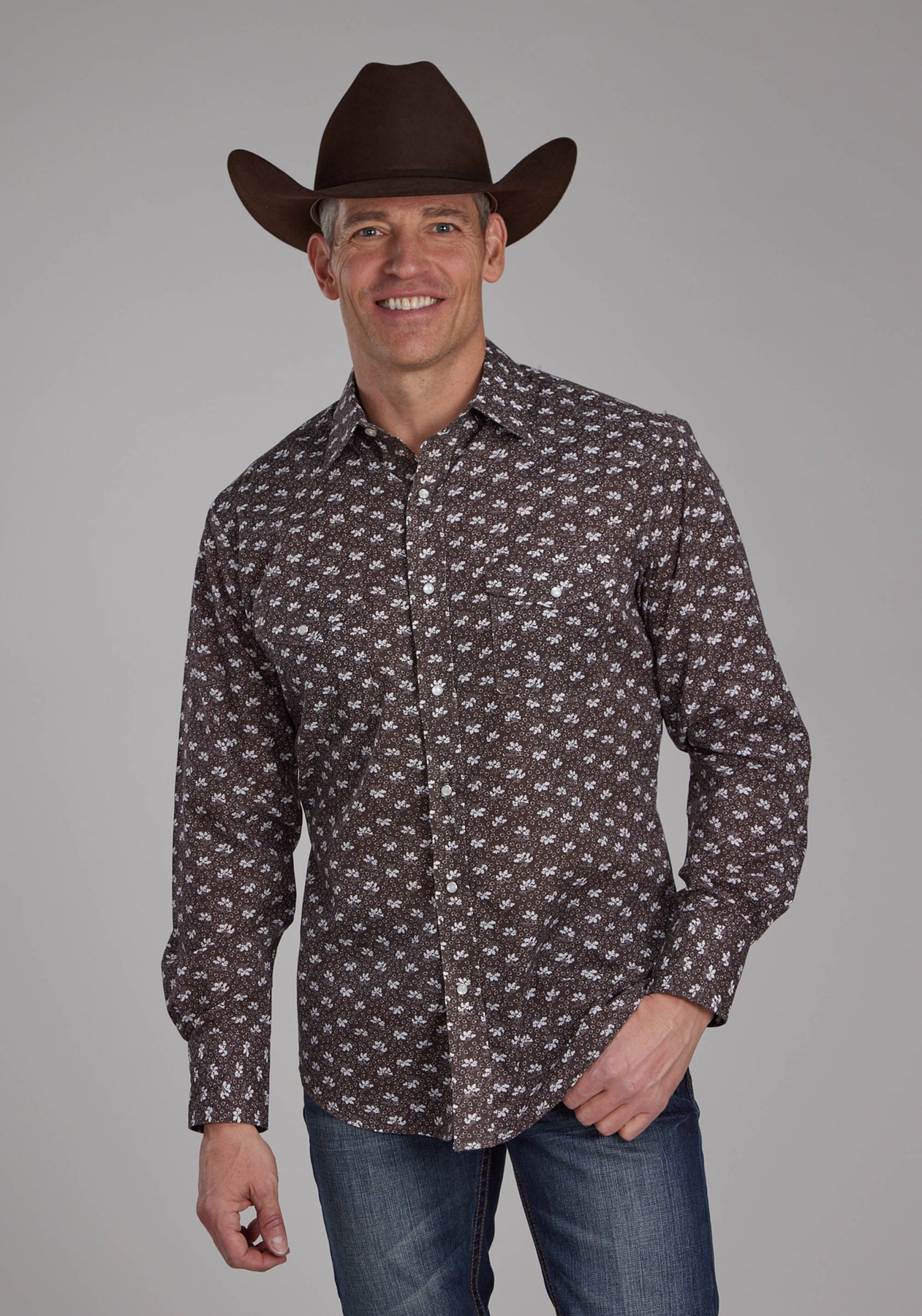 Mens Brown And Cream Floral Long Sleeve Snap Western Shirt