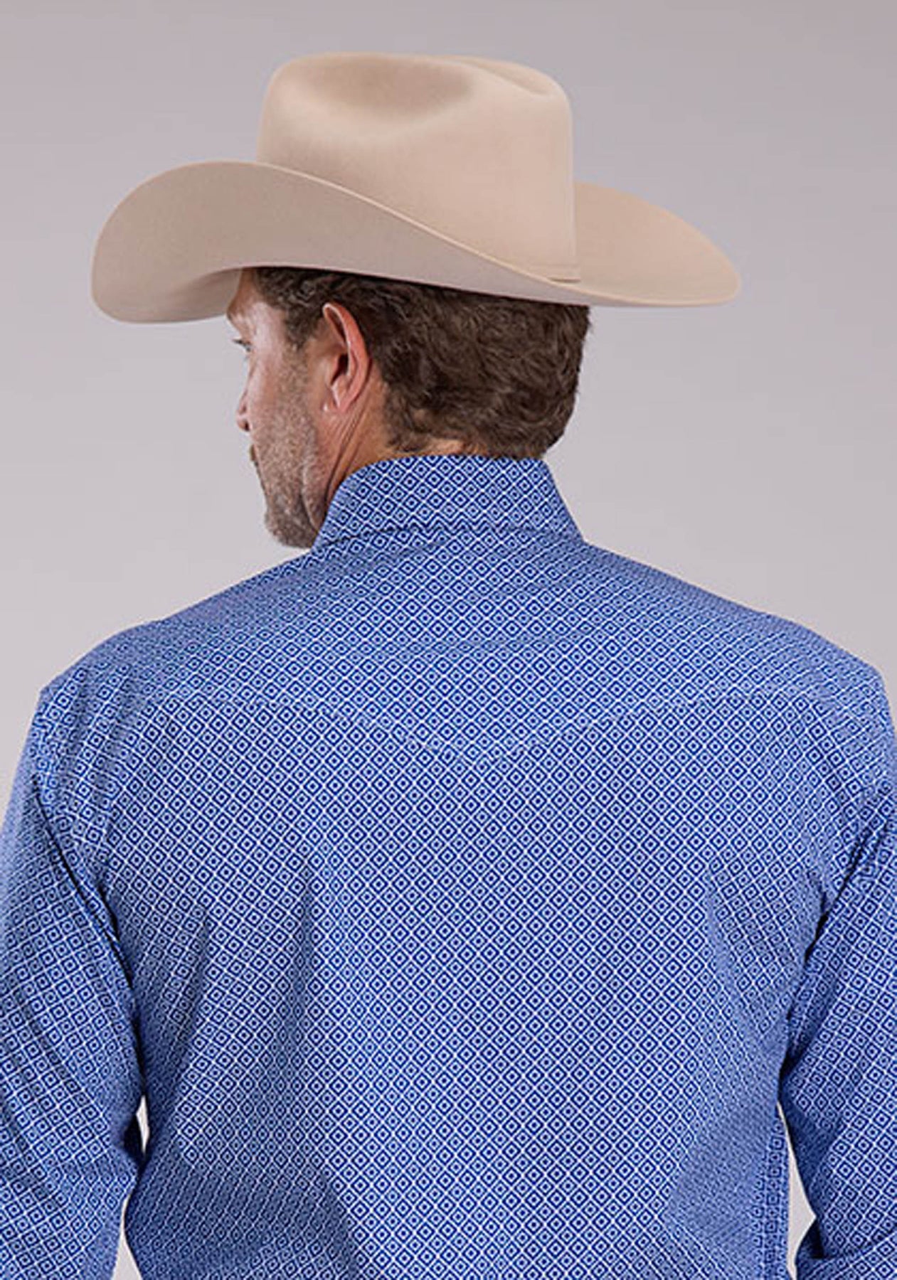 Mens Stretch Foulard Print - Blue Long Sleeve Snap Western Shirt