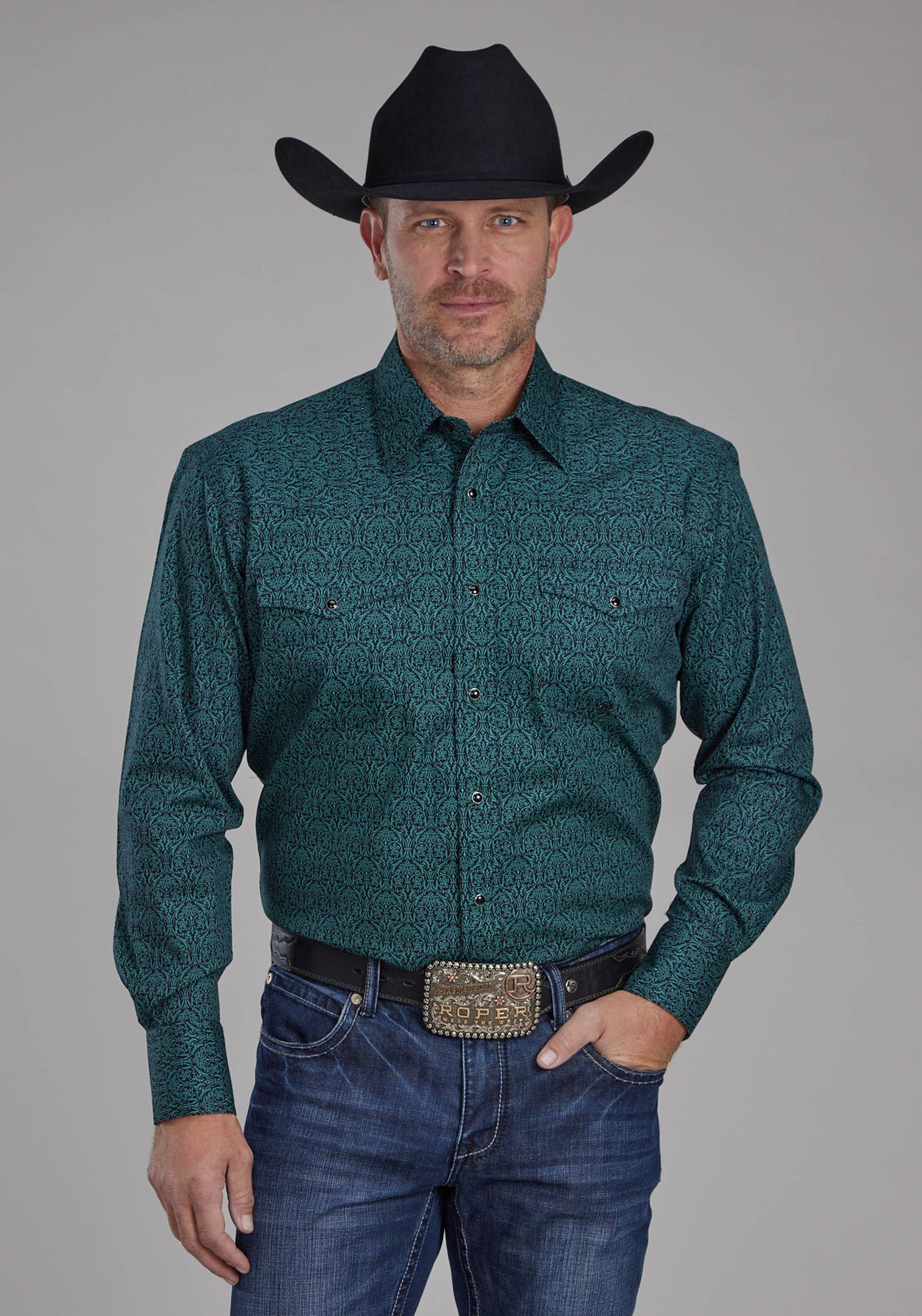Mens Vintage Paisley Long Sleeve Snap Western Shirt