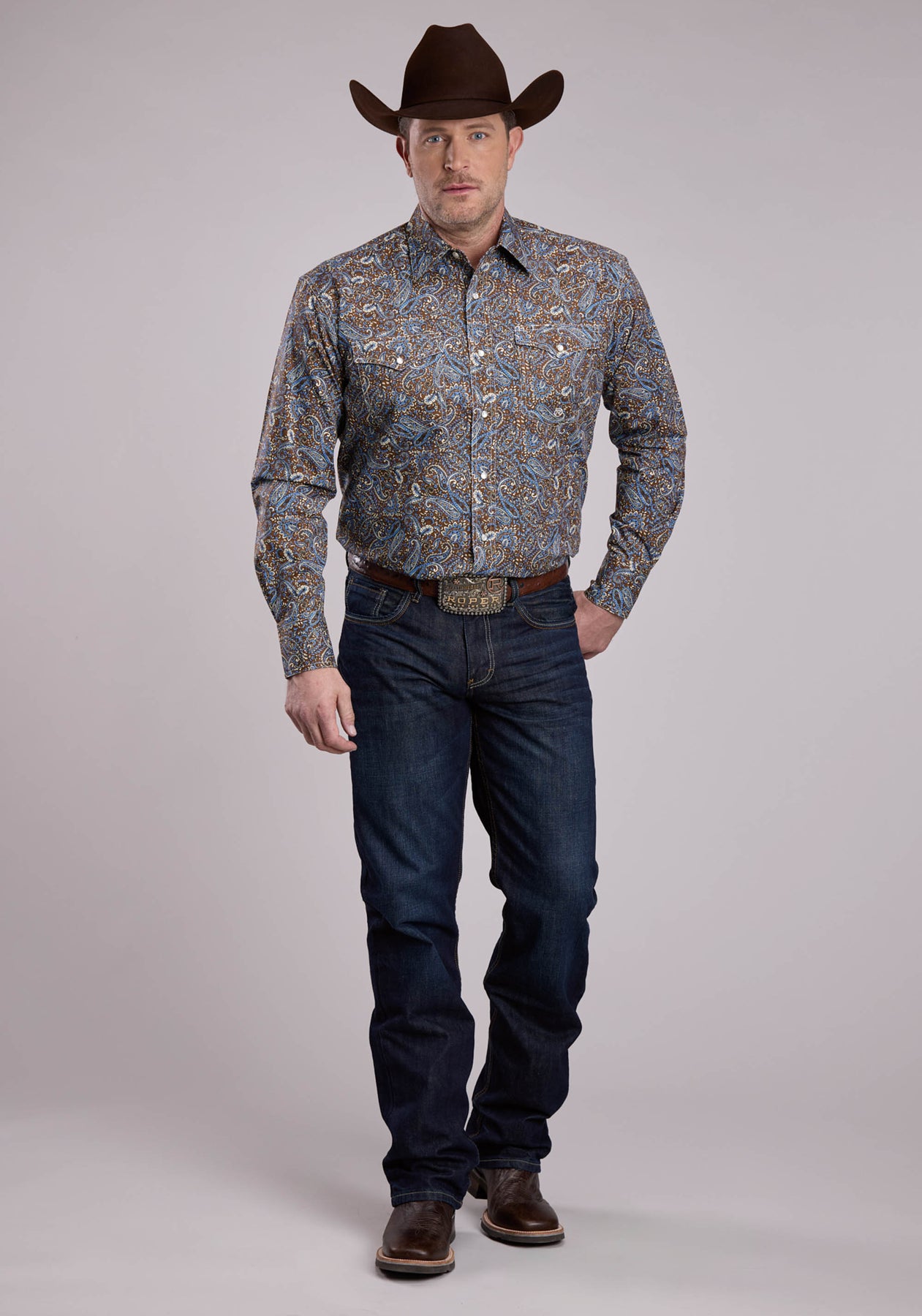 Mens Long Sleeve Snap Bluebird Paisley Western Shirt