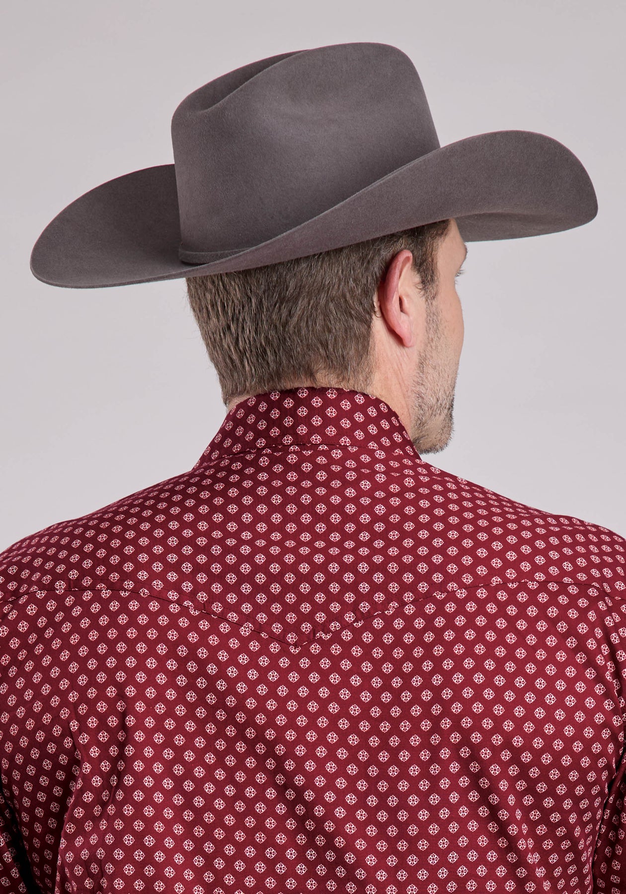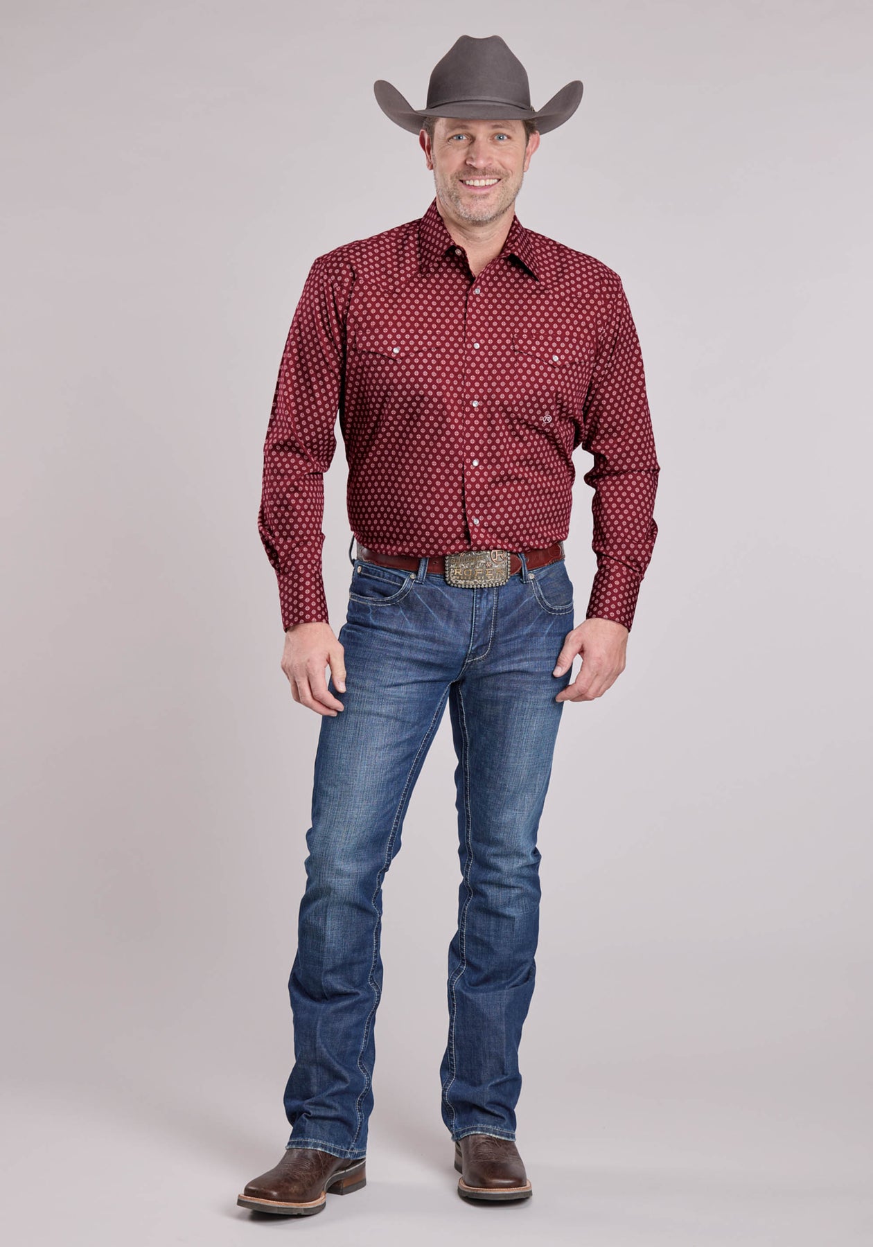 MENS LONG SLEEVE SNAP RED STRETCH FOULARD WESTERN SHIRT