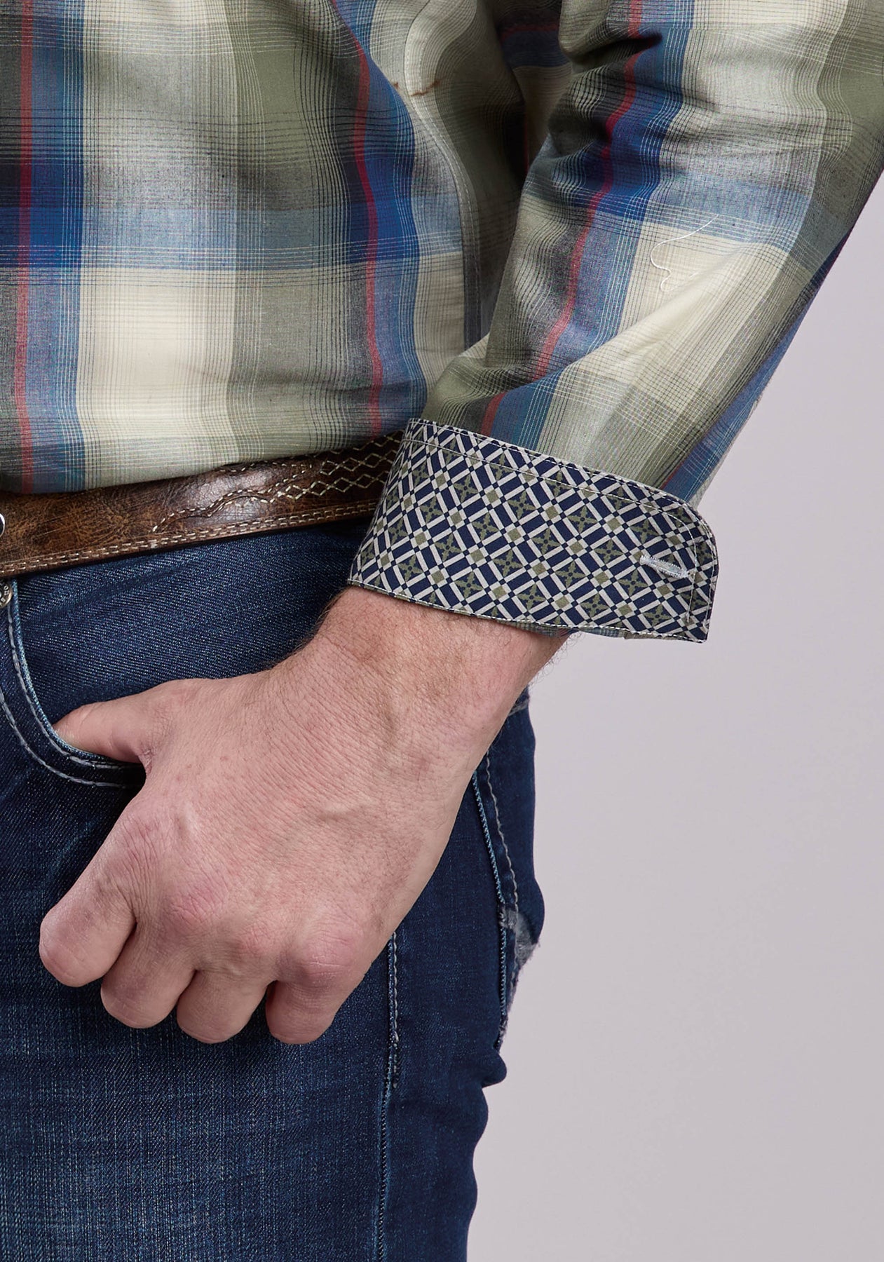 MENS LONG SLEEVE BUTTON EVERGREEN PLAID WESTERN SHIRT