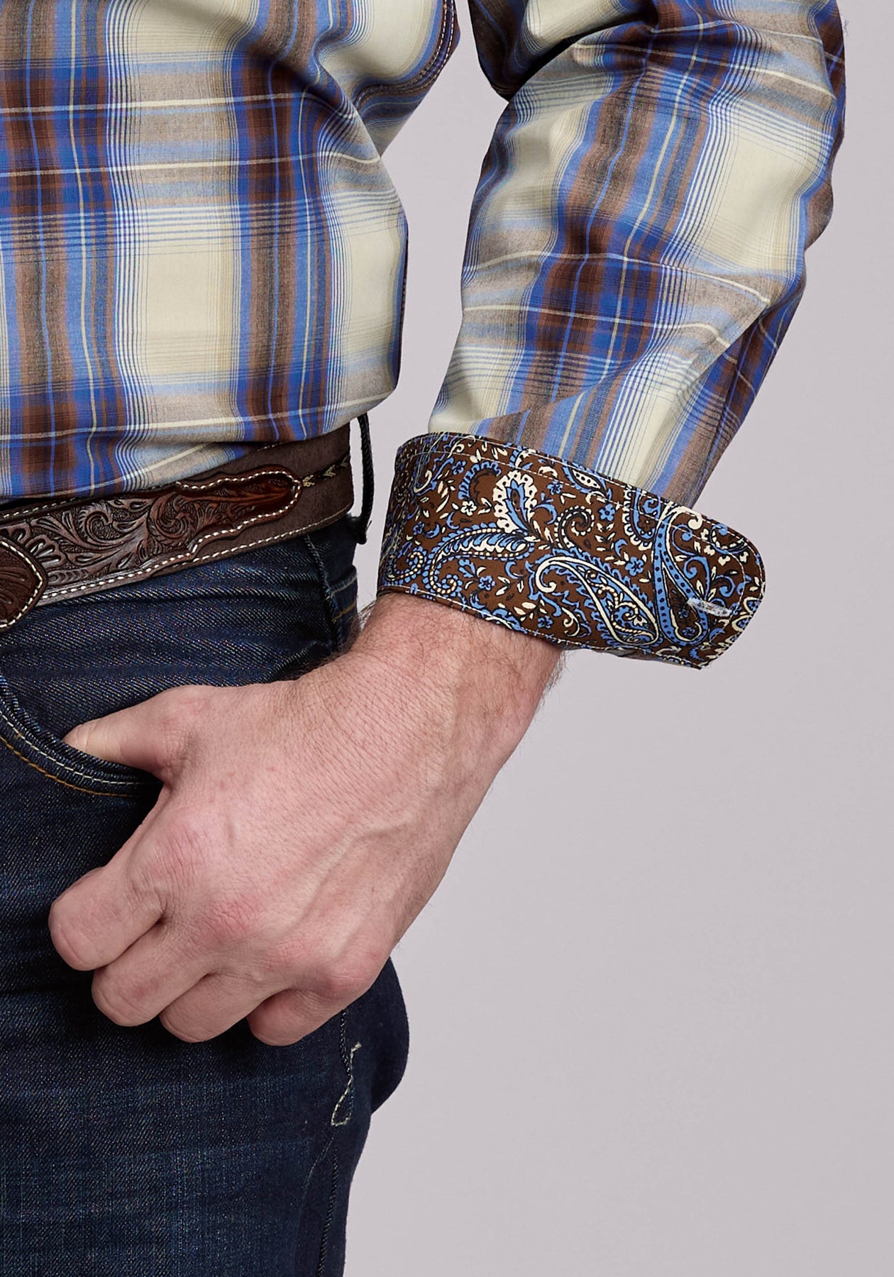 MENS LONG SLEEVE BUTTON OPEN WINDOW PLAID WESTERN SHIRT