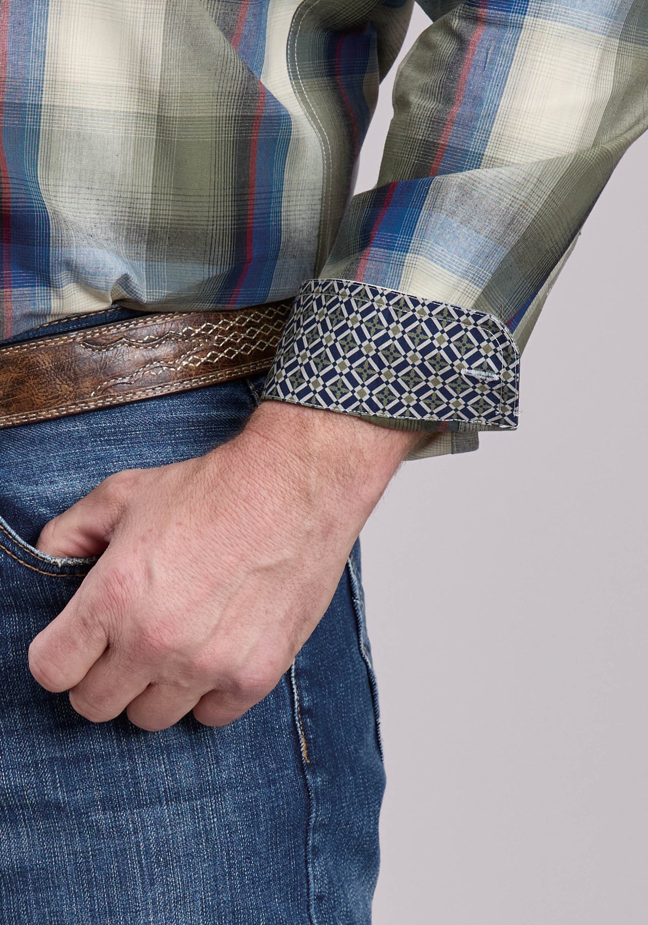 MENS LONG SLEEVE BUTTON EVERGREEN PLAID WESTERN SHIRT