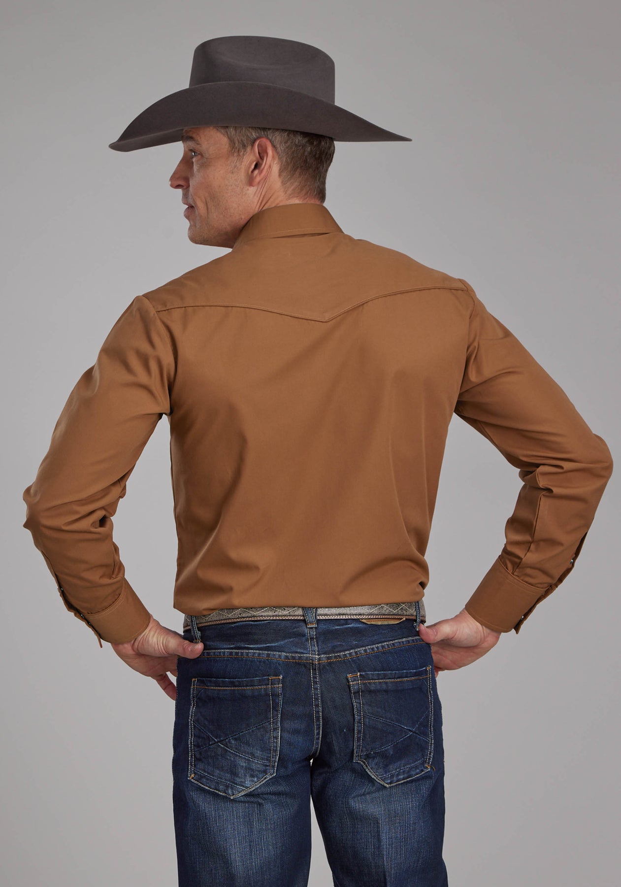 Mens Solid Rust Long Sleeve Snap Western Shirt