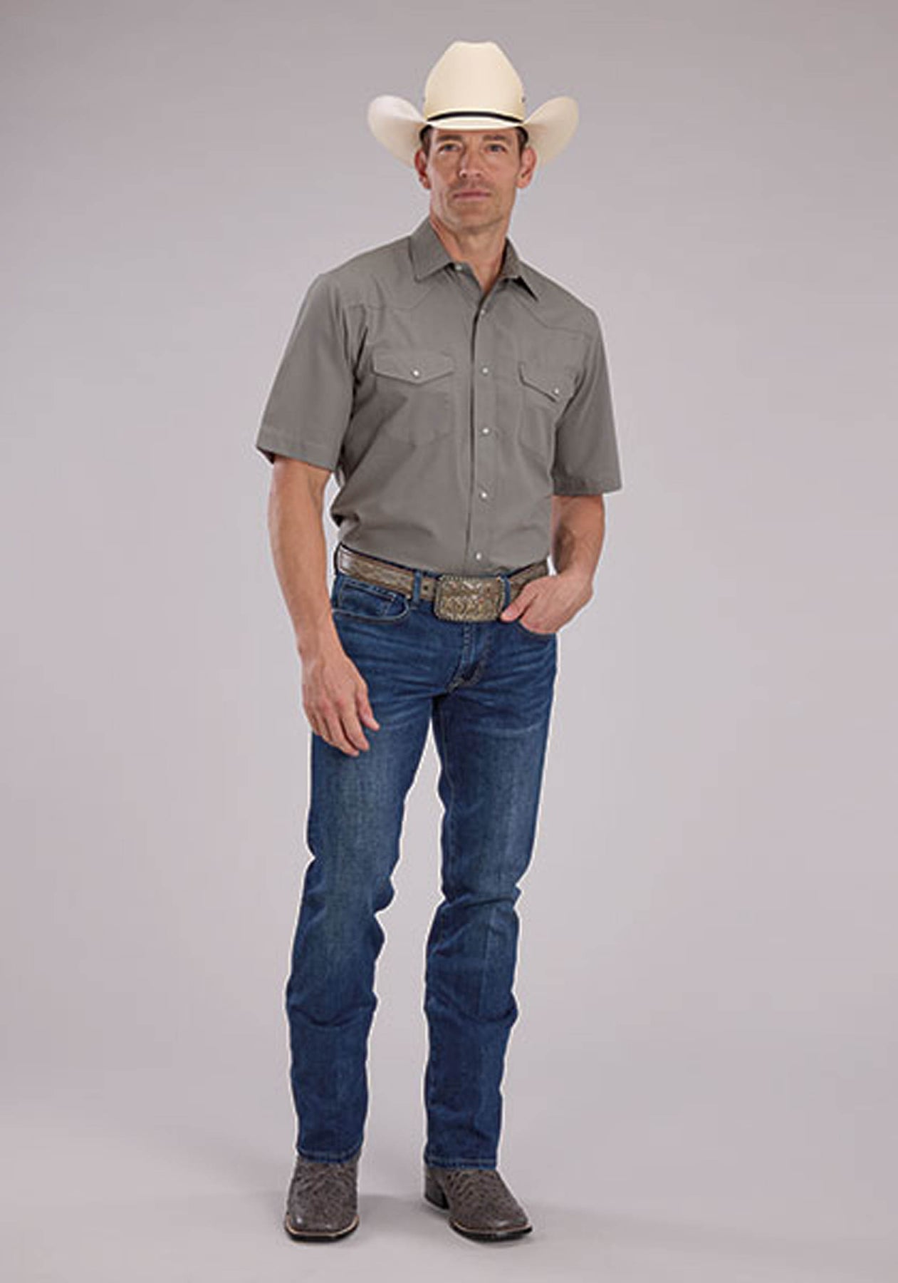 MENS SHORT SLEEVE SNAP SOLID BROADCLOTH - LIGHT SMOKEY GREY WESTERN SHIRT
