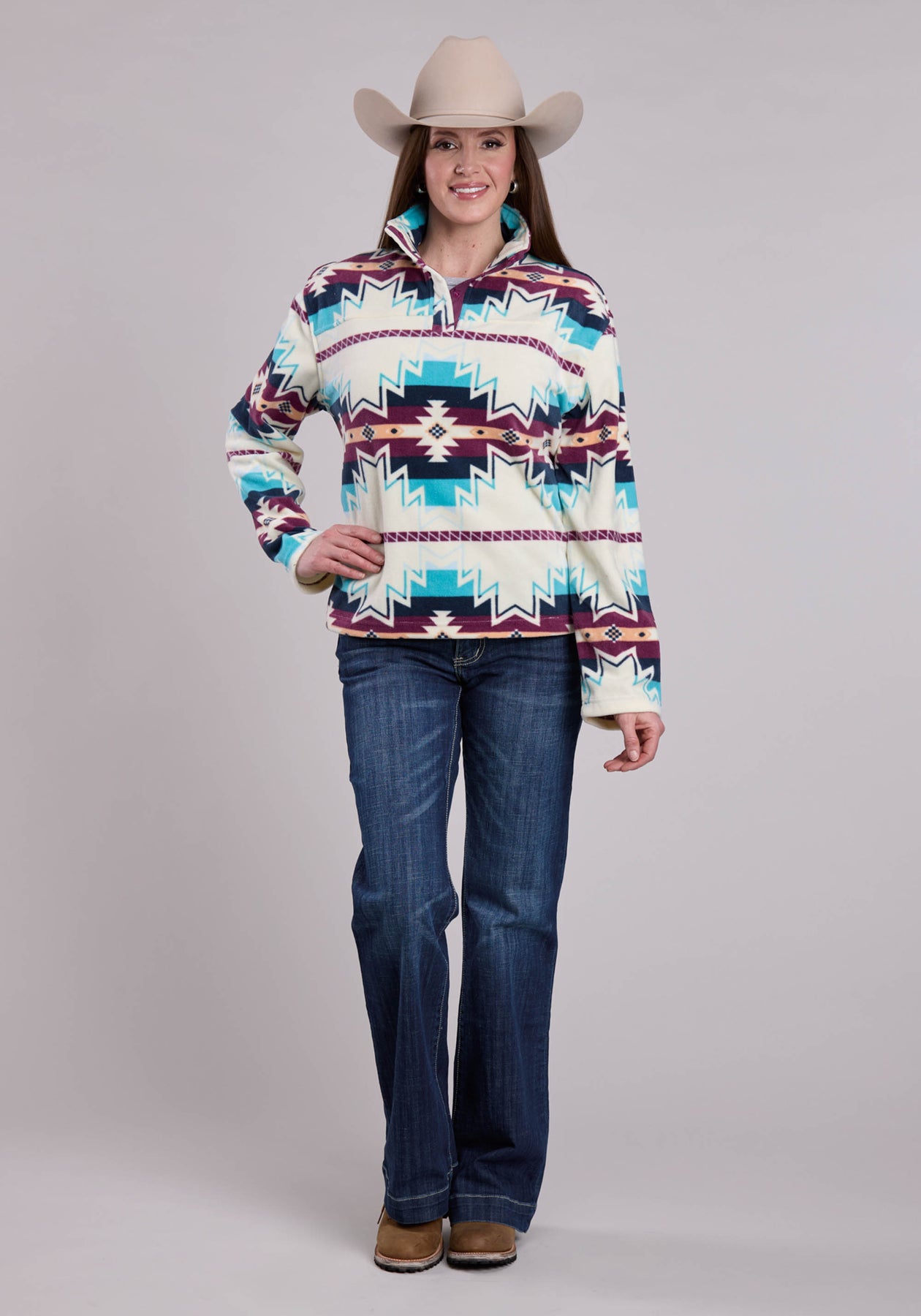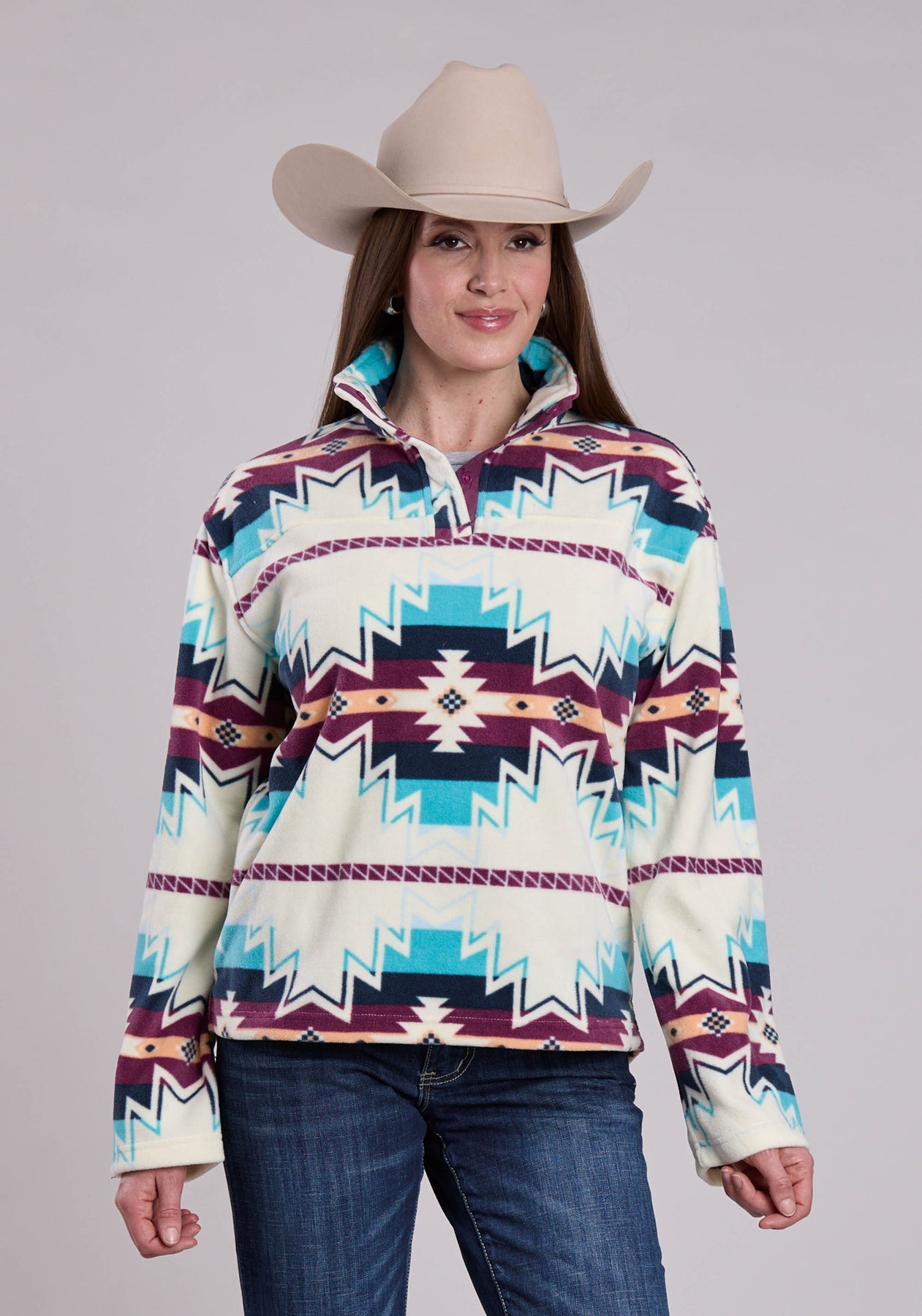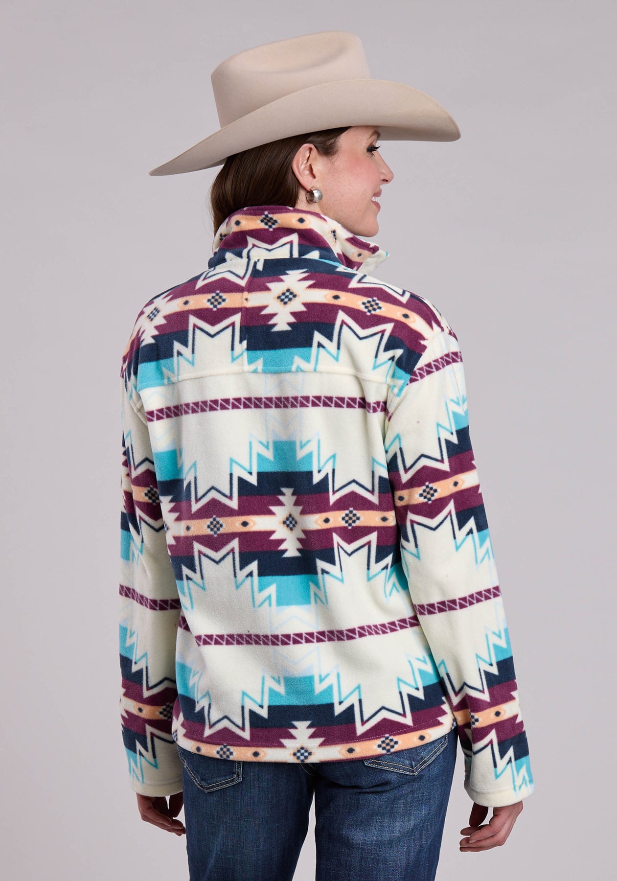 WOMENS JACKET SNAP LARGE AZTEC PRINT FLEECE PULLOVER WESTERN JACKET