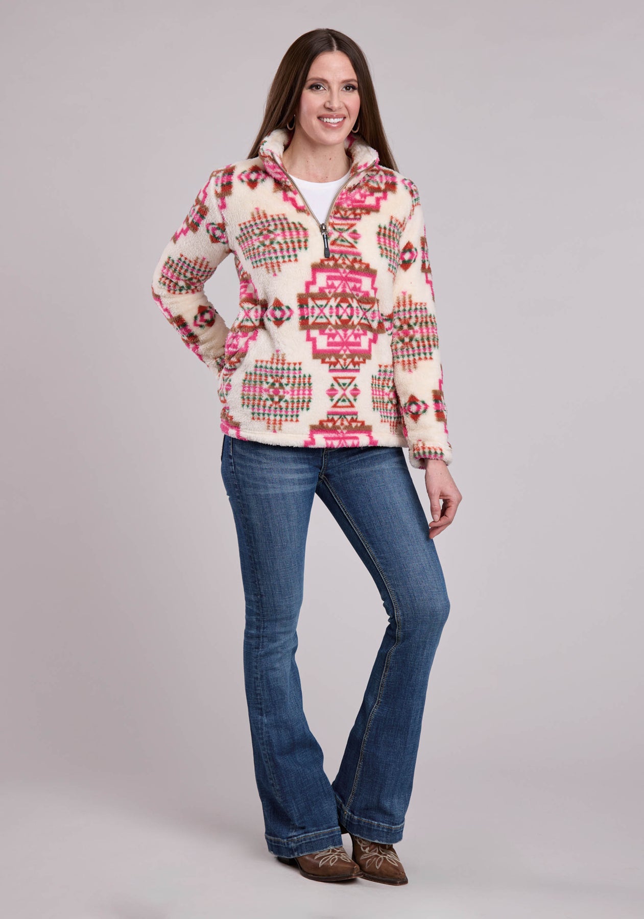 WOMENS JACKET ZIPPER 1/4 ZIP POLAR FLEECE PULLOVER WESTERN JACKET