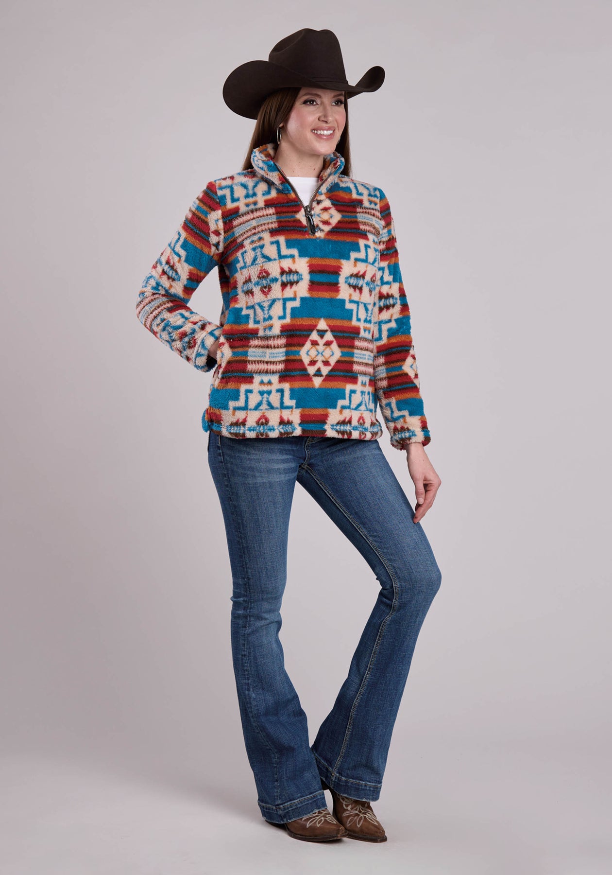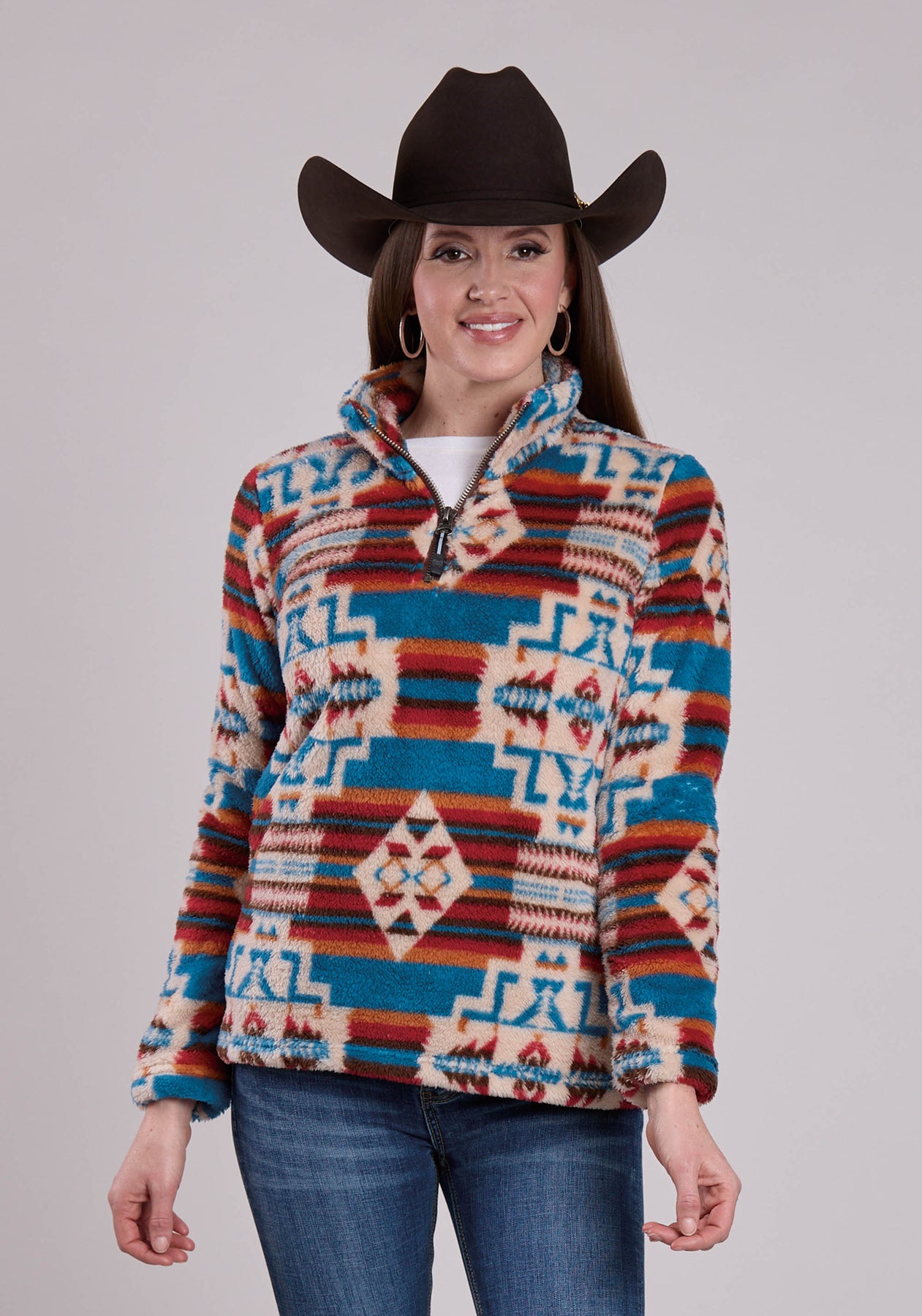 WOMENS JACKET ZIPPER 1/4 ZIP POLAR FLEECE PULLOVER WESTERN JACKET