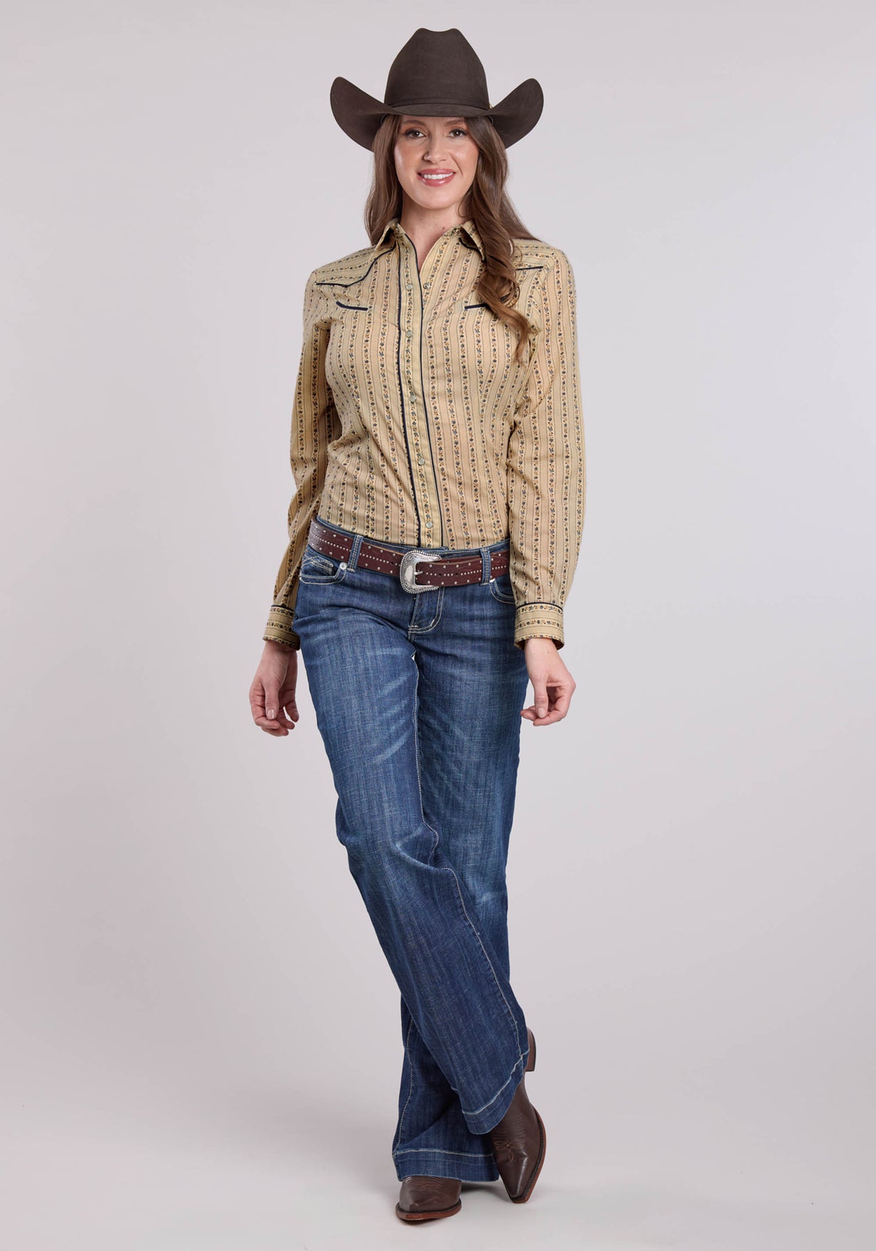 WOMENS LONG SLEEVE SNAP WALLPAPER FLORAL PRINT WESTERN SHIRT