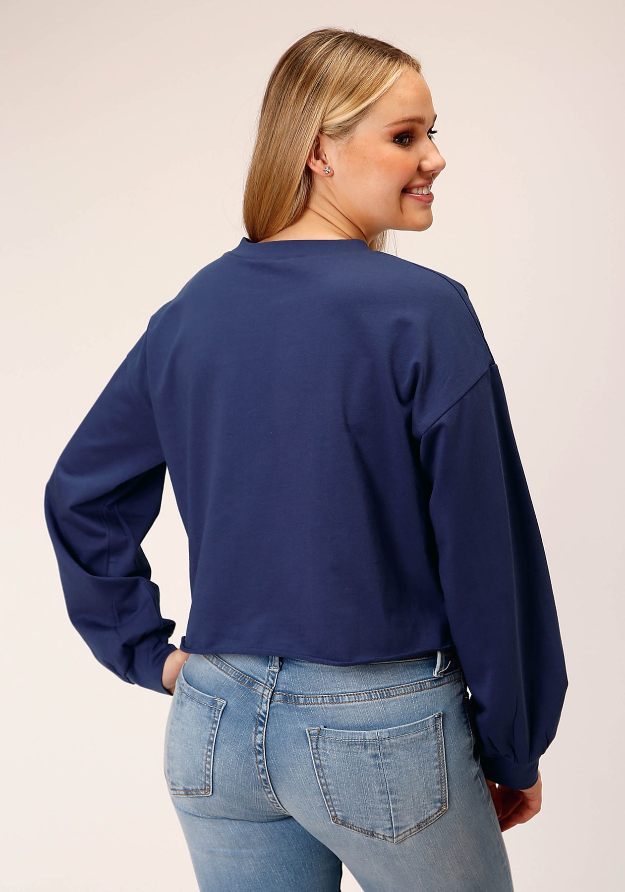 Womens Long Sleeve Knit Navy Blue French Terry Top