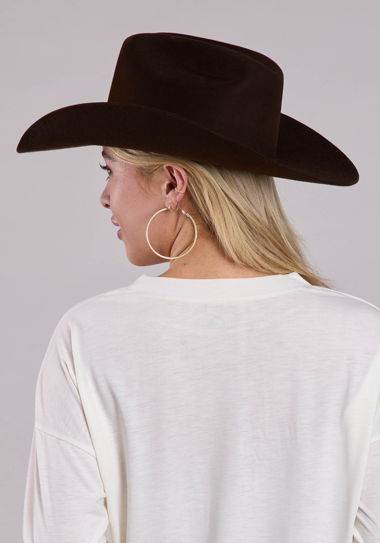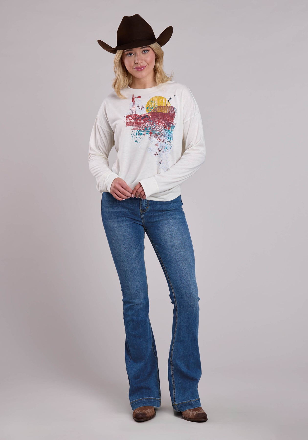 Womens Long Sleeve Pullover Cream Poly Rayon Box Fit Tee Western Shirt
