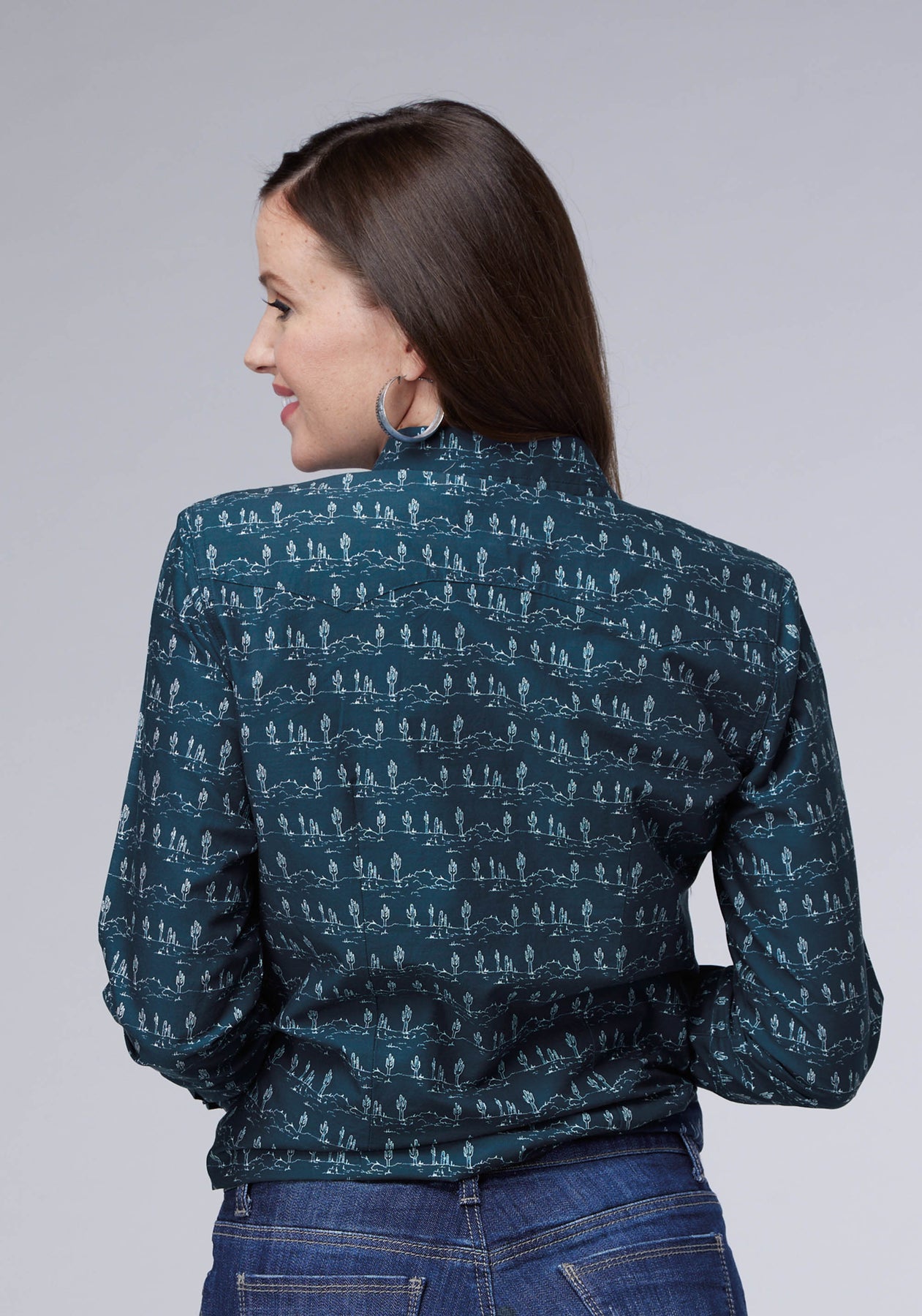 WOMENS DESERT STRIPE PRINT LONG SLEEVE SNAP WESTERN SHIRT